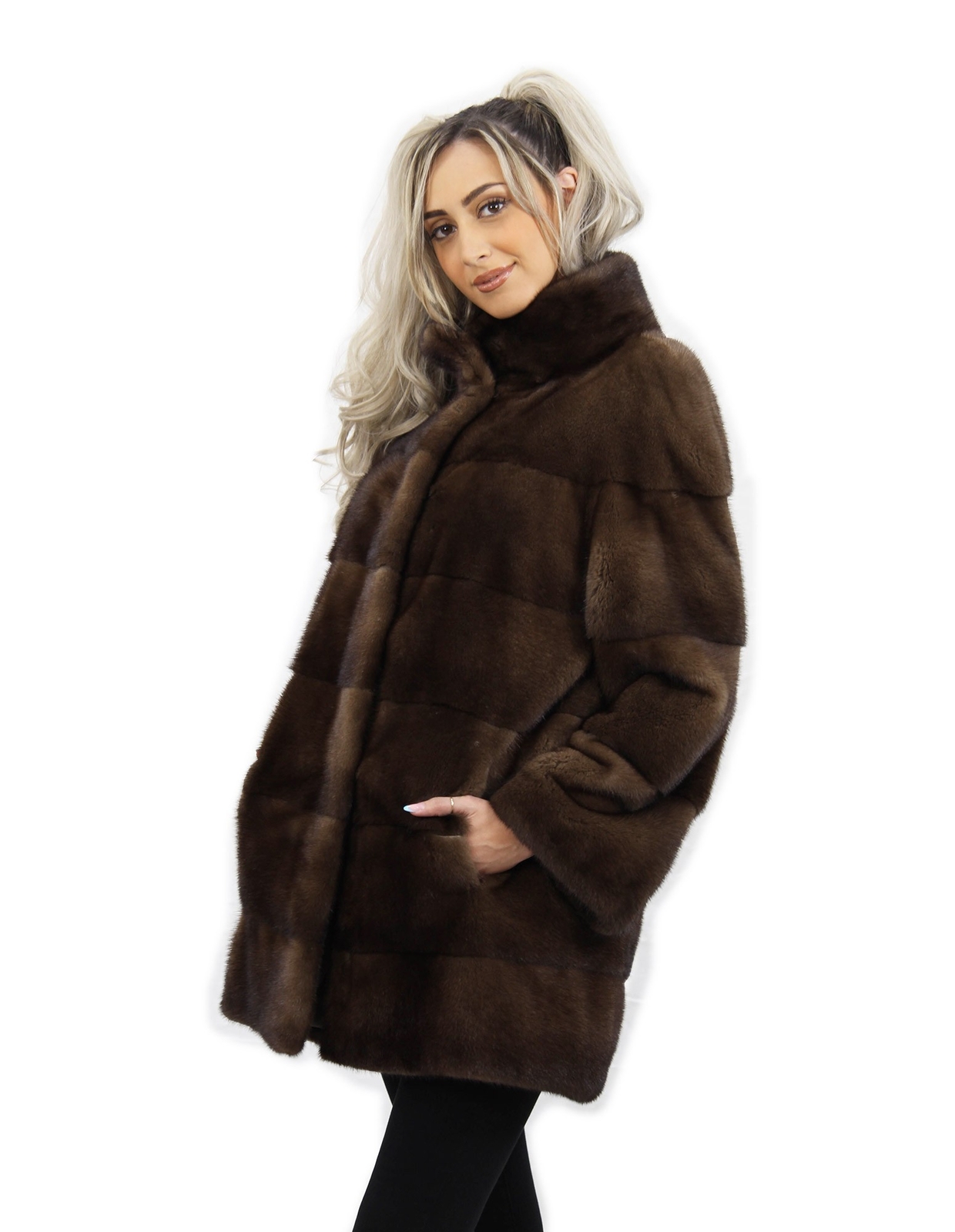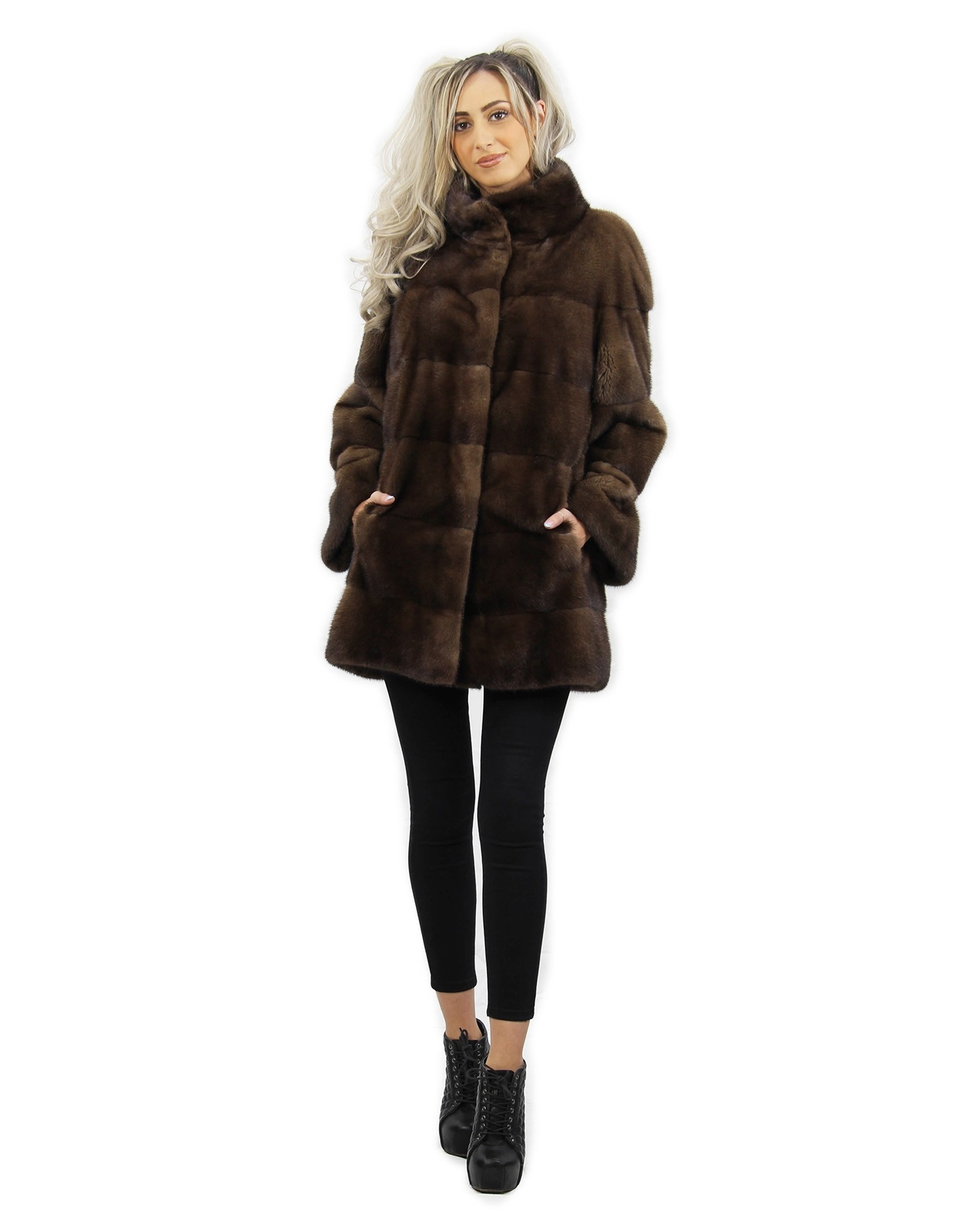 Jacket demi buff size 46 horizontal mink fur with Korean collar sleeve 3/4 INTERNATIONAL SHIPPING Shipping all over the world MADE IN ITALY PAYMENTS ACCEPTED We accept payments via PayPal, Credit Card, European bank transfer DESCRIPTION Mink jacket with whole skins in horizontal processing. Our mink furs are productions made in our workshops, therefore a unique and exclusive mink jacket. The possibility of producing our furs of the highest quality allows us to make proposals at different prices with various occasions at low prices always available. Furthermore, our laboratories and our collaborations guarantee a mink fur of undisputed quality 100% made in Italy. The quality of female mink fur used for this is a mink fur jacket with Kopenaghen furs branded skins. The mink fur jacket comes with external pockets, bell model with hook closure and Korean collar in mink fur, 3/4 sleeve in demi buff color 82 cm long. MEASURES Exact color - Demi Size - 46 Garment - Coat 75 cm Height cm (H) - 82cm 32.2 inches Pelvis cm (B) - 120cm 47.2 inches Breast Chest cm (C) - 112cm 44 inches Shoulder width cm (D) - 48Cm 18.8 Inch Outer Sleeve Length cm (E) - 58cm 22.8 inches Inner Sleeve Length cm (F) - 38cm 15 inches Waist cm (G) - 116cm 45.6 inches Neck Height cm (H) - Pistagna neck Bottom Width cm (I) - 124cm 48.8 inches Garment Size - 46 Color - Brown Item number - 563+ DEMI Padding - brown CODE ARTICLE 00276757 Prestalia e-commerce solutions.