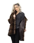 Luxurious mink sapphire fur hooded coat with long sleeves and pockets