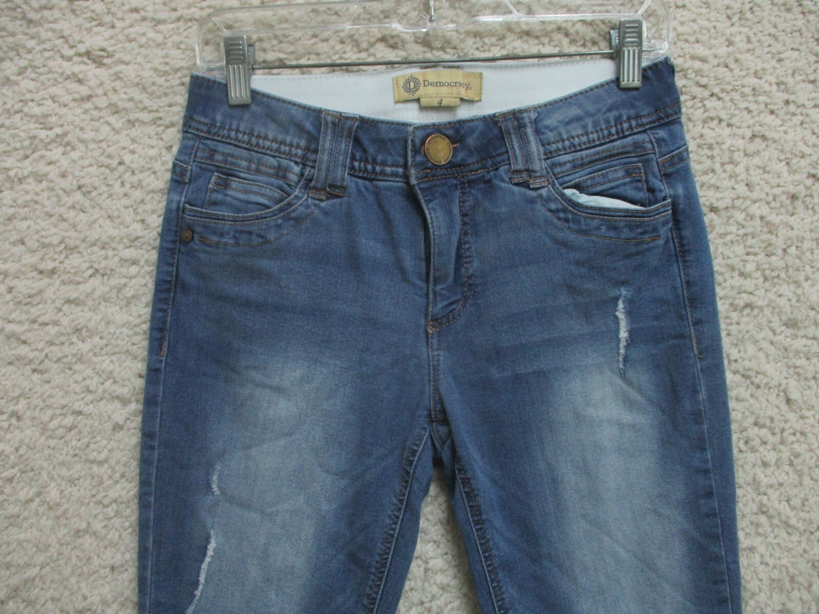 Dollhouse Jeans 7 Womens Juniors Size Blue Denim Straight Distressed Casual Logo