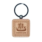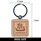 Denmark Travel Viking Ship Engraved Wood Square Keychain Tag Charm