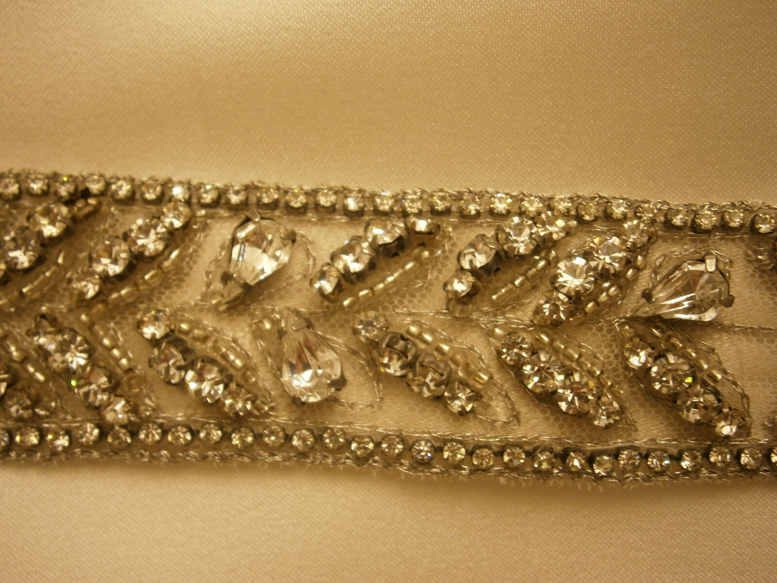 Lovely wedding belt with the most amazing Swarovski crystals. The color of the sash is ivory and width is 1 1/8" and end to end 30", which with the clip closure a 29 1/2" waist. Such a stunning belt for your special day! My belts and sashes came from Kleinfeld and other New York designer bridal shops. Superb quality! Adding accessories and finishing touches is what really completes the bridal look. Whether you’re looking to add a pop of pizzaz to your dress or jewelry, want to highlight your waist, or feel like switching up your style between the ceremony and the reception (without opting for a whole new gown), a wedding dress belt is the perfect way to make a gown uniquely yours. Location: Box #2, 119