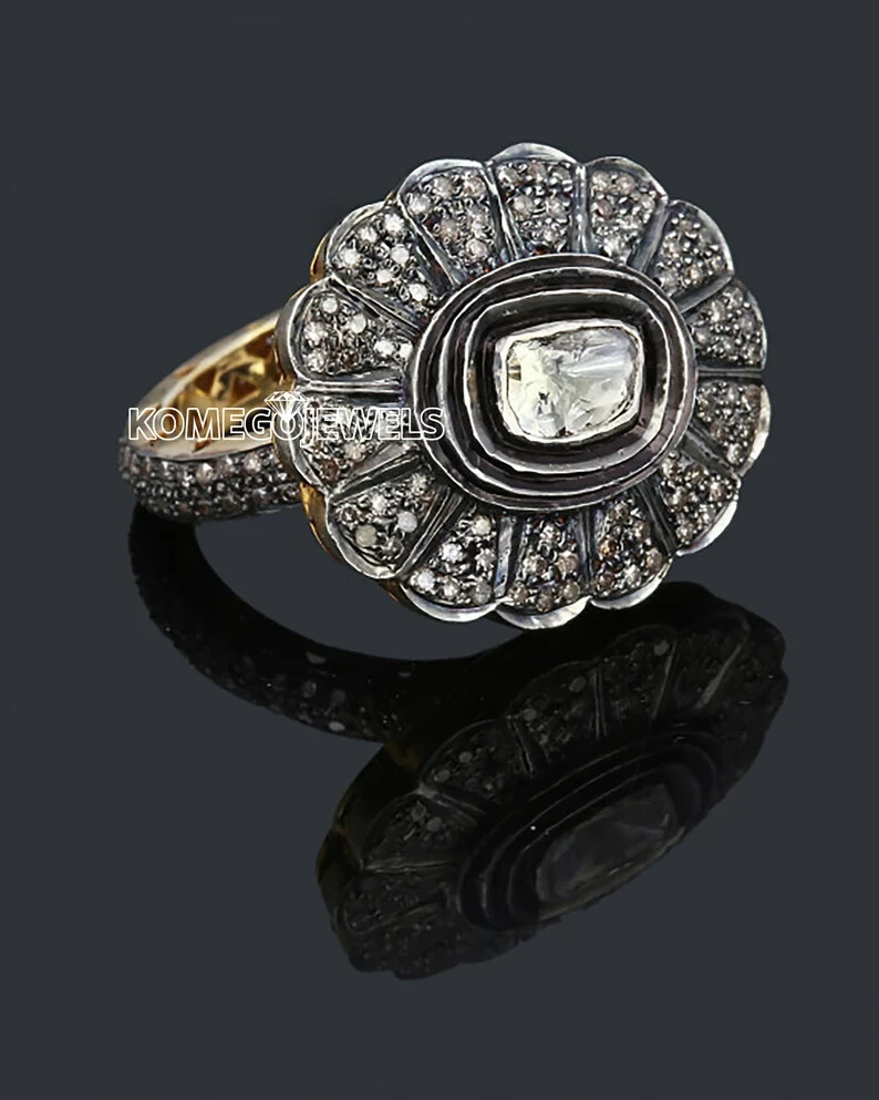 Ring Size: All Size Are Available Country of Origin: India Setting Style: Bezel Personalize: Yes Material: Natural Diamond, 925 Sterling Silver Vintage: Yes Main Stone Width: Irregular Main Stone: Diamond Country/Region of Manufacture: India Number of Gemstones: As Per Given Picture Number of Diamonds: As Per Given Picture Main Stone Length: Irregular Main Stone Depth: Irregular Secondary Stone: Polki & Pave Diamond Metal Purity: 925 Cut Grade: Good Diamond Clarity Grade: Included (I1) Diamond Color Grade: I Main Stone Creation: Natural Total Carat Weight: Irregular Features: Stackable Handmade: Yes Colored Diamond Intensity: Fancy Brand: Handmade Type: Ring Sizable: Yes Customized: Yes Main Stone Color: Natural Metal: Silver Personalization Instructions: we will feel happy to serve you with the best we can Era: Victorian Base Metal: 925 Sterling Silver Style: Cocktail Band Width: Irregular Theme: Angels, Anime, Art, Awareness, Beach, Beauty, Colleges & Universities, Ethnic, Family & Friends, Hunting, Inspirational, Letters, Numbers & Words, Love, Luck, Magic, Nature, Religious, Vacation, Western, Holiday Color: Gold Wholesale: Yes Occasion: Anniversary, Birthday, Christening, Christmas, Engagement, Mother's Day, Valentine's Day, Wedding Main Stone Treatment: Not Enhanced Signed: Yes Main Stone Shape: Irregular Shape: Irregular
