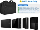 【Case for External Desktop Hard Drive】Internal dimensions: 8.35 x 5.82 x 2.45 inch. This travel bag case fits 3.5-inch Seagate Backup Plus Hub 4TB 6TB 8TB 10TB 12TB external desktop hard drive storage. Case only! (Devices and accessories are not included). 【Wide Compatibility】The storage case is also compatible with seagate expansion desktop 4tb 5tb 8tb 10tb 12tb 14tb 16tb 18 tb 20tb 22tb 24tb external desktop hard drive hdd usb 3.0, western digital wd elements / my book / easystore desktop hdd 4tb 5tb 8tb 10tb 12tb 14tb 16tb 18 tb 20tb 22tb usb 3.0 external hard drive. 【Good Protection】The padded protective case is made of 600D twill fabric with a super soft velvet interior and lined with 3mm EPE foam. High quality travel case design to protect your external desktop hard drive storage from dust, scratches, splashes, bumps and knocks. 【Large Capacity】This HDD bag keeps your electronics and devices safe and in one place. The main compartment is large enough to hold your USB desktop hard drive, and the front pocket stores AC adapter, USB 3.0 cable, cables, memory cards, SD card and other items. 【Convenient Design】The durable and smooth zippers are easy to open and close. Features nylon strap handle that allows for convenient portability on the go. Suitable for various occasions such as home, travel, outdoor camping, and business. Product Description Trave Case for Desktop External HDD (Case Only) High quality: Made of 600D thickened Oxford fabric and soft flannel, lined with 3mm EPE foam; Good Protection: It protects your hard drive from dust, scratches, spills, minor knocks and bumps. Large Capacity: Two compartments, has enough room for the hard drive and accessories. Internal dimensions: 8.23" L x 5.9" W x 2.56" H. Designed for Seagate Backup Plus Hub Drive 4TB 6TB 8TB 10TB 12TB; Compatible with Seagate Expansion desktop hard drive 4TB 6TB 8TB 10TB 12TB 14TB 16TB 18TB 20TB 22TB 24TB; Compatible with WD Elements Desktop Hard Drive 4TB 6TB 8TB 10TB 12TB 14TB 16TB 18TB 20TB 22TB; Compatible with WD MY BOOK Desktop HDD Storage 4TB 6TB 8TB 10TB 12TB 14TB 16TB 18TB 20TB 22TB; Compatible with WD easystore Desktop HDD 4TB 6TB 8TB 10TB 12TB 14TB 16TB 18TB 20TB 22TB; Lightweight yet stylish travel case makes your external hard drive portable and travel friendly. Transport your HHD easily with this storage case. Perfect for home, office and outdoor use.
