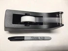 Desktop Tape Dispenser 1" Core Weighted Non-Skid Base Black Dispenser Heavy Duty Dispenser is made of 100% recycled plastic. Economical, reliable classic style desktop tape dispenser. Replaceable 1 in. hub. Non-skid base 13 Holds 1 in. core tape, up to 3/4 in. wide and 1500 in. long. Classic black. Weighted base for one-handed dispensing. 2.7 in. x 2.7 in. x 6.4 in.