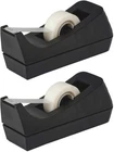 Desktop Tape Dispenser - Non-Skid Base - Weighted Tape Roll Dispenser - Perfect for Office Home School (Tape not Included) - (2-Pack) Includes 2 black plastic tape dispensers Weighted and non-skid rubber base to keep dispenser in place Accepts tape sizes 1/2 inch and 3/4 inch wide, up to 1500 inches long. Works well with Scotch Magic Tape (810K6), and Staples Invisible Tape (52477). High-quality cutting blade lasts for years
