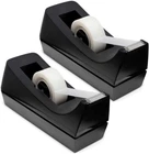 Desktop Tape Dispenser - Non-Skid Base - Weighted Tape Roll Dispenser - Perfect for Office Home School (Tape not Included) 2 Pack Includes 2 black plastic heavyweight tape dispensers. Weighted and non-skid rubber base to keep dispenser in place. Accepts tape sizes 1/2 inch and 3/4 inch wide, up to 1500 inches long. Works well with Scotch Magic Tape (810K6), and Staples Invisible Tape (52477). High-quality cutting blade lasts for years. Product Description