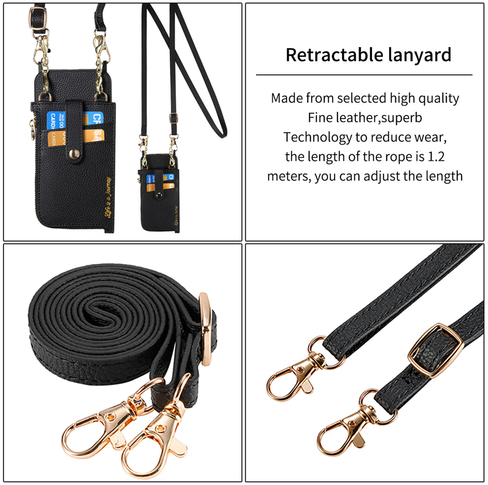Product Description: * 100% Brand New Condition * Camera Protection : Camera cut out is deep, protect your phone's camera from scratches and keep your flash fully functional * Perfect Protection : Lay-on table design, beveled edges are higher than the screen level to protect your screen from impact & scratches * It can protect your phone back from fingerprints, scratches, dusts, collisions, accidental drops and abrasion * Unique design allows easy access to all buttons, controls & ports without having to remove the case * Easy to install and remove (Pls choice your right Phone model, if you need other model, pls search in our store.) Package Included: 1 X Case Cover Only Detachable Card Holder Crossbody Wallet Case For iPhone 15 Pro Max 14 13 12 11 Product Description: * 100% Brand New Condition * Camera Protection : Camera cut out is deep, protect your phone's camera from scratches and keep your flash fully functional * Perfect Protection : Lay-on table design, beveled edges are higher than the screen level to protect your screen from impact & scratches * It can protect your phone back from fingerprints, scratches, dusts, collisions, accidental drops and abrasion * Unique design allows easy access to all buttons, controls & ports without having to remove the case * Easy to install and remove (Pls choice your right Phone model, if you need other model, pls search in our store.) Package Included: 1 X Case Cover Only Brand Unbranded Type Crossbody Case Features Anti-Fingerprint, Anti-Scratch, Card Pocket, Dustproof, Lightweight, Non-Slip, Shockproof, With Strap Material Synthetic Leather+TPU Compatible Model For Apple iPhone 11, For Apple iPhone 11 Pro, For Apple iPhone 11 Pro Max, For Apple iPhone 12, For Apple iPhone 12 Pro, For Apple iPhone 12 Pro Max, For Apple iPhone 13, For Apple iPhone 13 Pro, For Apple iPhone 13 Pro Max, For Apple iPhone 14, For Apple iPhone 14 Plus, For Apple iPhone 14 Pro, For Apple iPhone 14 Pro Max, For Apple iPhone 15, For Apple iPhone 15 Plus, For Apple iPhone 15 Pro Max, For Apple iPhone 15 Pro Design/Finish Hybrid, Luxury, Thin Fit Compatible Brand For Apple MPN Does Not Apply