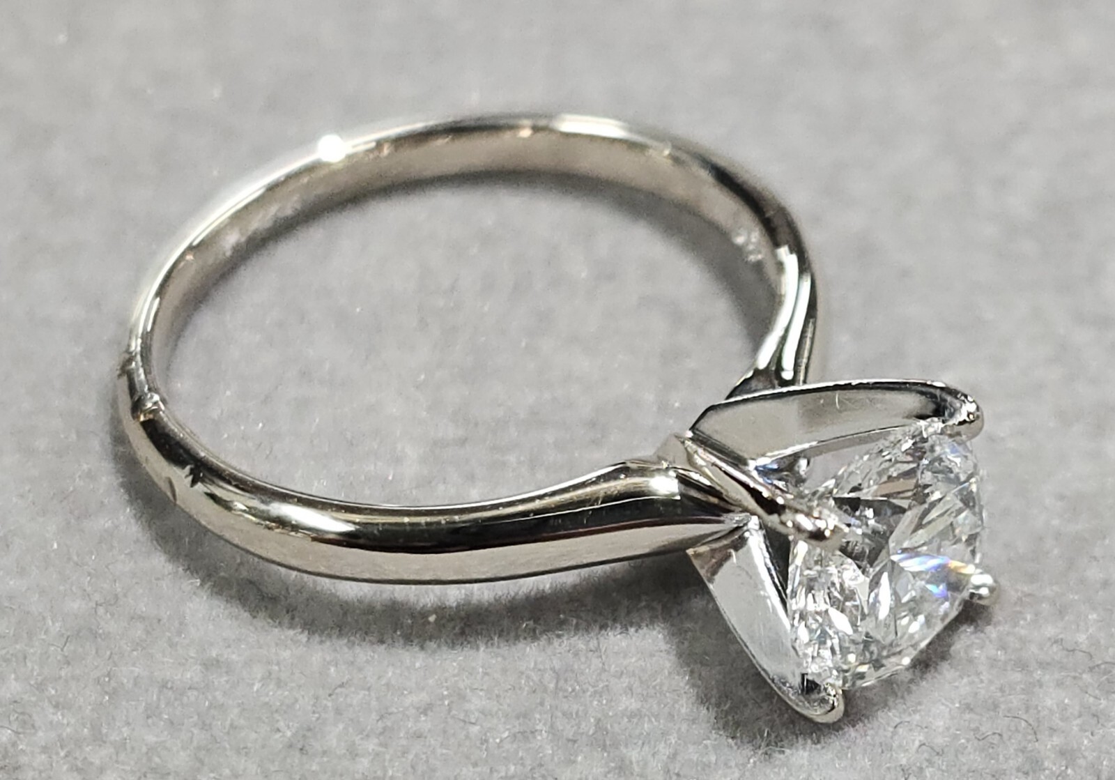 !!!! CAN BE SIZED BEFORE SHIPPING JEWELE ONSITE !!!! At No Additional Cost GSI Report# 12847203102 This stunning engagement ring features a sparkling round brilliant diamond as its centerpiece, set in a prong style. The ring is made of 14k white gold and has a band width of 4mm, making it sturdy yet delicate. The diamond has a color grade of H and clarity grade of I1. The ring comes with a certification from GSI, ensuring its authenticity and value. It is a perfect ring for someone looking for a timeless and elegant piece of jewelry to celebrate their love. !!!! CAN BE SIZED BEFORE SHIPPING JEWELE ONSITE !!!! At No Additional Cost