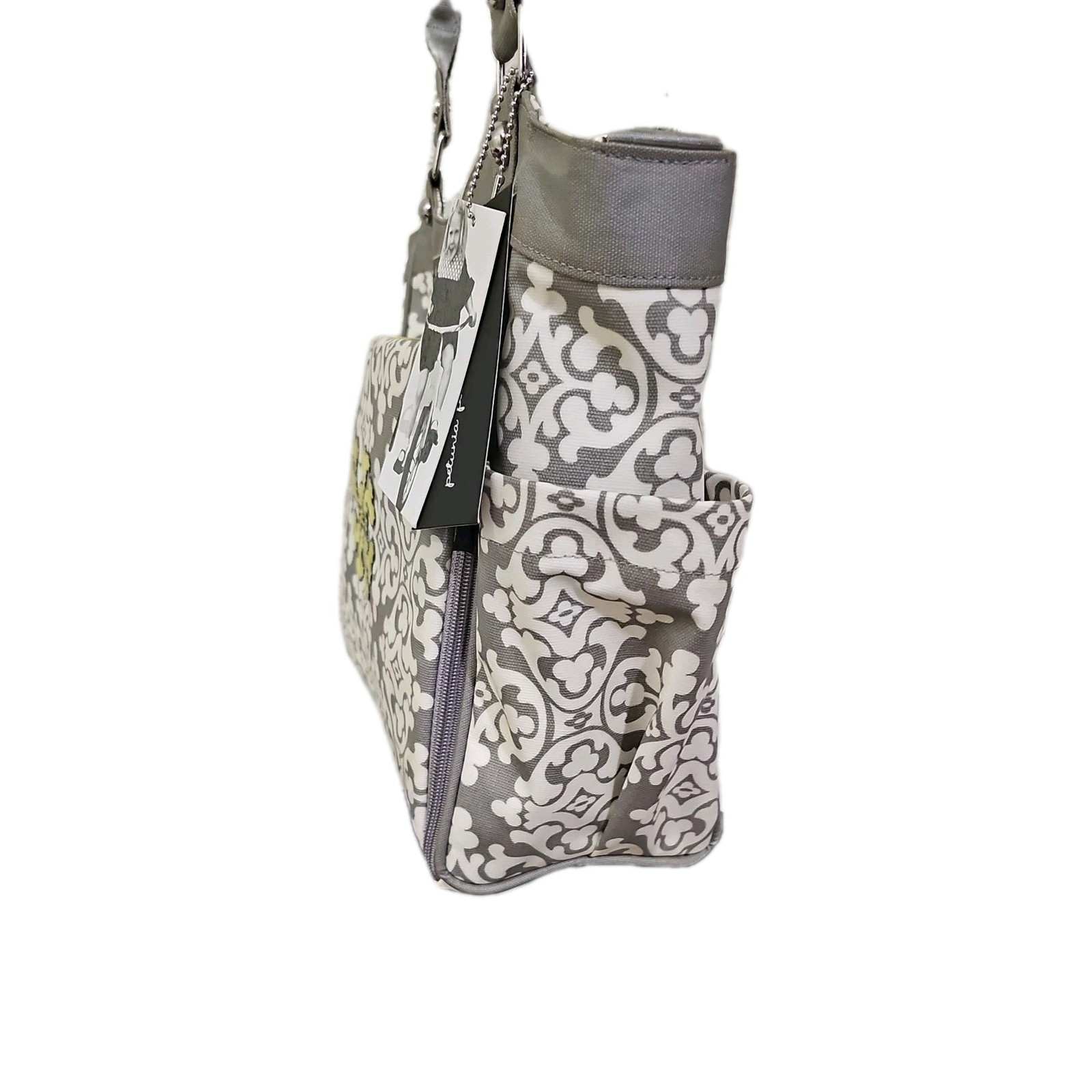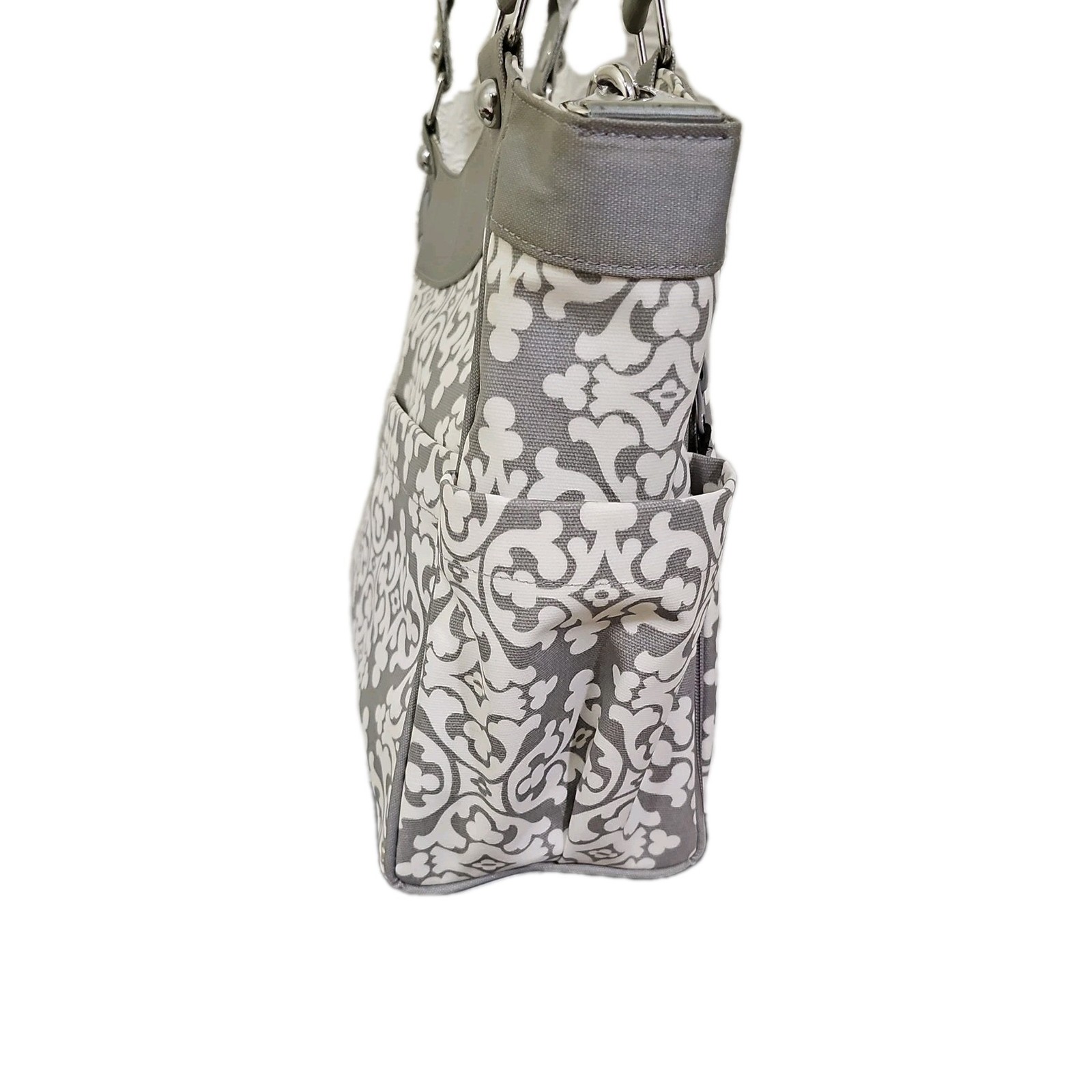 Inspired by cosmopolitan charm, the City Carryall diaper bag makes a statement worthy of the society pages and light work of your to-do list. Featuring clever pockets for organization, a built-in changing station and multiple carrying options. Removable strap drop: 20 inches;Pockets: 4 interior slip, 1 interior zip, 8 exterior