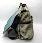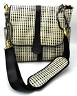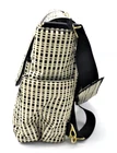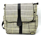 JJ Cole backpack, messenger bag/diaper bag. Large. Lots of compartments and pockets inside and outside this bag. This chic black and white check bag can be used by a mom or dad on the go or someone who needs to carry lots of things that they need throughout the day! . 10 pockets total . 2 zipper front pockets . 2 exterior (sides of bag) bottle/sippy cup/umbrella pockets . strong ziptop closure closes and secures everything . metal feet to protect the bottopm of bag . wipe clean . opotional padded shoulder strap . includes no slip rubber straps for attaching to stroller or shopping cart . 15 inches tall X 15 inches wide X 5 inches deep . includes coordinating changing pad located in the outside back pocket Brand new, it costs over $100. This used, cleaned bag costs about 1/2 the retail price!