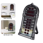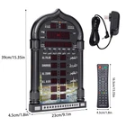 About this item Prayer Reminder: 5 Azan Alarms, Azan clock with a high quality azan sound for all prayers with azan volume control fitted in all clock models. City Setting & Azan Taqweem Systems: Azan clocks help easily to set city by international dialing telephone code. Date Setting&Temprature Display: Use Hijr and Gregorian Calendar Setting and temperature reading in Celsius (C) is displayed. Daily Alarm & Weekend Alarm Setting: The daily alarm is a regular alarm that rings at the same time everyday. Moreover, this alarm can be set not to ring on weekends. Perfect Gift: Full screen LED light Snooze option,Use for wall mounted or desktop decor, perfect Ramadan gift and New Year gift.Any questions about thia azan clock,please feel free to contact us. Specifition: Color: Black Voltage: DC12V Current: 1A Plug: US Plug Display Type: Digital Style: Modern Special Feature: Alarm, Snooze, Temperature Display, Calendar Display Product Dimensions: 15.35"W x 9.1"H Power Source: Corded Electric Room Type: Home Office Material: Acrylonitrile Butadiene Styrene Shape: Rectangular Product Description *Products Description Muslim Silver Alfajr Azan Clock HA-4008 * NOTE: only use the adapter to use the clock rather than the bettery. The batteri only for remembering the time. Prayer times for most cities in the world with five calendars are supported for the time of prayer. To easy use programming by international dialing telephone code especially in Al-harameen. *Could easily modify the difference time prayer to the outskirts of cities adopted it. *Special alarm to wake up, works automatically with the possibility of closure. *Prayer alarms to reminders of Iqama or salat time for all prayers. *Full screen LED light Snooze option. *Temperature. Daily alarm. *The possibility turn on or off azan sound imposed on all alone. *Complete azan for all prayers(with volume control). *Hijri and Gregorian calendars. *Daylight saving time option. Package included: 1 x Wall Clock(Not included battery) 1 x Remote control(Not included 2*AAA battery) 1 x US Plug Adapter 1 x User manual
