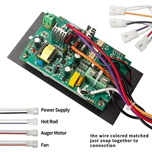 Universal Temperature Control Panel Kit (vertical style) ▶Perfect Fit◀ ✔Fits Traeger pellet grills pro 20 series,22 series,34 series ▶Package included◀ ✔1× Thermostat Controller Board ✔1× Temperature Sensor ✔2× Meat Probe ▶Advantages◀ ✔Good quality :High quality PCBA & High quality aluminum knob for switching models and adjusting temperatures ✔Easy installation :Standard plug-in connectors & Plug and play ✔LCD Display :Clear and bright ✔2 Probes Simultaneous Monitoring :can monitor the temperature in real time ✔Different Models :It has [smoke mode] and [temperature modes] from 180 ℉ to 375 ℉,[High mode] can be used for highest heat possible ▶ATTENTION◀ ✔Before ordering, please make sure this fits your original parts. ▶Quality Customer Service◀ ✔Please feel free to contact us if you have any thoughts or problems, we are always here to help you. BAC365 controller compatible with all Traeger pellet grills (except PTG Junior, Tailgater, or Bronson ) Includes and two meat probes, and necessary hardware. Dual meat probes monitor internal meat temperatures without losing heat Includes one temperature sensor precision Temperature Control: Maintain your Traeger temperature within +/- 15 degrees F for ultimate precision Aluminum knob for switching models and adjusting temperatures range 180 ℉ to 375 ℉ Control board with standard plugs,features 4 quick-connect wires and 1 RTD probe,easy to assembly,plug and play