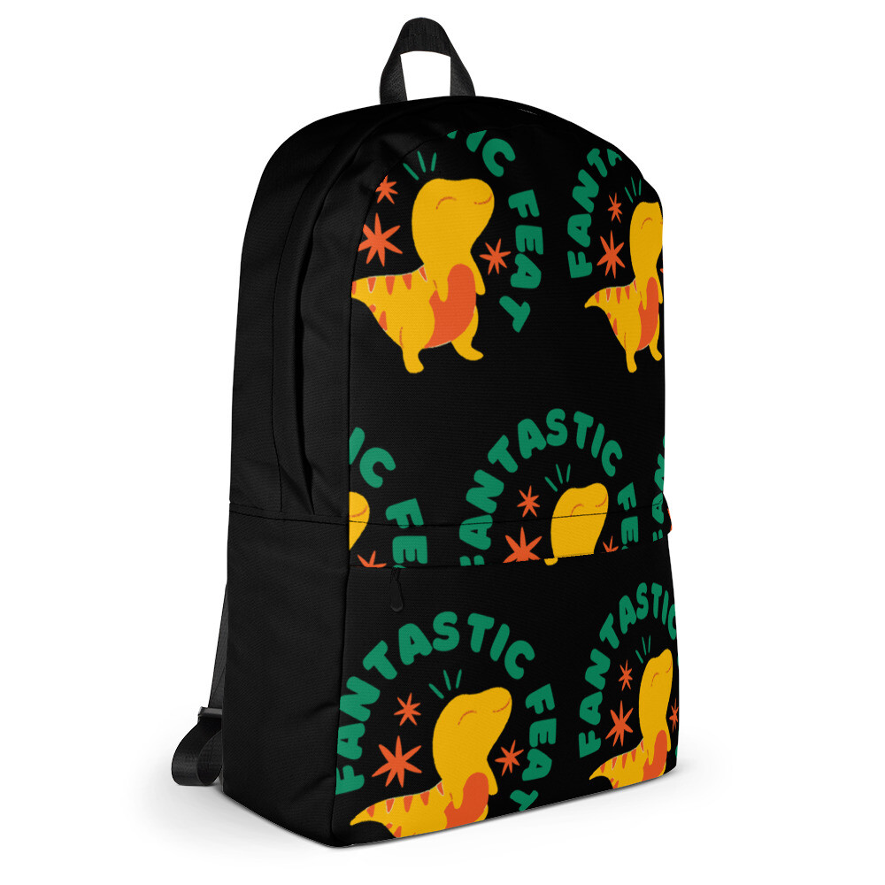 Occasion: Casual Department: Men Lining Material: Fabric Bag Depth: 3 in Style: Backpack Character Family: dinosaur Size: Medium Theme: dinosaur, School, Animals Bag Width: 12 in gtin13: Does Not Apply Features: Laptop Sleeve/Protection, Adjustable Strap, Inner Pockets, Lightweight, Padded, Zip-Around, Water Resistant UPC: Does Not Apply Material: Polyester Color: Black Pattern: Animal Print Bag Height: 16 in Closure: Zip Brand: Custom t-shirt Character: girl, dinosaur, Boy Country/Region of Manufacture: United States Vintage: No
