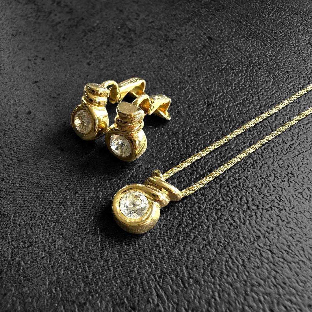 Dior Rhinestone Gold Necklace Earrings Set Of 2 Key Features ## Product Overview This is a luxurious Dior Rhinestone Gold Necklace and Earrings Set of 2, perfect for adding a touch of elegance to any outfit. Crafted with high-quality materials, this jewelry set features sparkling rhinestones and a sophisticated gold finish, making it an ideal choice for special occasions or stylish everyday wear. ## Key Features and Benefits - Authentic Dior jewelry set - Includes a matching necklace and earrings - Elegant rhinestone embellishments for a glamorous look - Gold-tone finish adds luxury and versatility - Perfect for formal events, parties, or as a gift ## Technical Specifications and Details - Brand: Dior - Set Type: Necklace and Earrings Set (2 pieces) - Material: Gold-tone metal with rhinestone accents - Condition: Excellent pre-owned condition - Dimensions: Necklace length approximately 16 inches (including clasp), earrings size approximately 0.75 inch in diameter - Features: Rhinestone embellishments, secure clasp, lightweight design ## Product Condition This Dior jewelry set is pre-owned but remains in excellent condition, with minimal signs of wear. All rhinestones are intact and securely attached, and the gold-tone finish retains its original luster. ## Main Selling Points - Authentic Dior designer jewelry - Elegant rhinestone detailing for a luxurious appearance - Complete set of necklace and earrings for versatile styling - High-quality craftsmanship and materials - Suitable for various occasions, from formal events to casual outings ## Additional Information This set offers a timeless and sophisticated accessory option for collectors or fashion enthusiasts seeking genuine Dior jewelry. Perfect as a gift or a personal luxury item, it combines elegance with durability. Specifications Brand Christian Dior Product Description Item Title Dior Rhinestone Gold Necklace Earrings Set Of 2 Payment Supports managed payments Please pay within 5 days after auction is finished. About Us We are located in Japan. It's our pleasure to make you happy by proposing our recommend item. If you have any questions or request about items, please feel free to ask us. International Buyers - Please Note: -Import duties, taxes, and charges are not included in the item price or shipping charges. These charges are the buyer's responsibility. -Please check with your country's customs office to determine what these additional costs will be prior to bidding/buying. -These charges are normally collected by the delivering freight (shipping) company or when you pick the item up - do not confuse them for additional shipping charges. -We do not mark merchandise values below value or mark items as - gifts - The US and International government regulations prohibit such behavior. Thank you for your understanding.