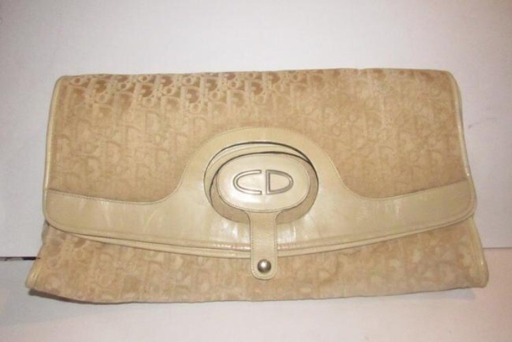 ONE OF A KIND DIOR PURSE! For sale is a RARE, Christian Dior, creamy latte colored, Dior trotter print heavy canvas fabric and beige leather, extra-large, two-way style tote or clutch with an open top, two, leather port hole/punch top handles, the ability to be folded and snapped into place as a clutch, and an oval leather patch at the center with the bold gold CD logo which is attached to the snap closure! It is a unique, gorgeous bag from Dior, perfect for any time of year! The bag is a two handle, tote or clutch style purse by Christian Dior. It is made of Dior's heavy trotter print canvas fabric in what I would call a latte color- darker than ivory, but lighter than brown and beige leather. It has no top closure. There is an oval leather patch at the center with the bold gold CD logo which is attached to the snap closure that allows it to be folded and snapped into place as a clutch. Inside, there is one large compartment and a pocket. The interior is lined in matching leather with a trotter print pocket and is in excellent overall condition. It is embossed with a faded stamp in gold that reads, 'Christian Dior, Made in France'. It has a classic look that will never go out of style. It'd be a fantastic addition to any collection! This bag was definitely made by the one of the top high end European designers that every lady deserves to own a purse by for her collection! The bag is in excellent condition, inside and out! It still has a whole life to live with you! Don't miss out! Measurements are 16" x 15" x 3.5" when full with two 3" handles. The purse is in excellent condition! Please note bag is not new and is exactly as pictured. It is 100% authentic. It predates serial numbers, but has been authenticated by a third party expert, so buy with confidence! I love having a matched set- especially for work or travel! I have several, other purses in the same color Dior trotter print which would look great as a set, especially for travel. Check out my other listings in my store! I have 3K+ vintage and new, designer purses, so, if this one is not for you, I bet I have one that is 'it'! Questions? Just ask! :-) If you'd like more pictures, just email me. Check back soon- I list new items daily! * Please don't hesitate to make a reasonable offer. I am always willing to negotiate! :-) * Track Page Views With Auctiva's Counter