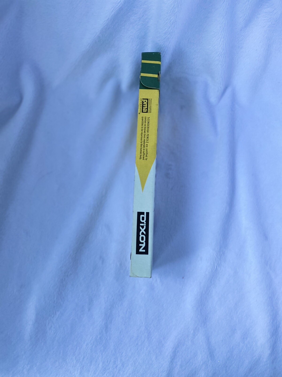 24 new old stock vintage Dixon Ticonderoga 2.5 medium pencils. One of the boxes has moisture damage and is a little wavy (see photos). Lot of 2 boxes with 12 in each box. This comes from a clean, smoke free, pet loving home (don't worry the cat and the dog don't write). International customers, if you do not use global shipping, import fees are your responsibly. Thanks for looking!