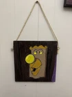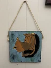 Disney DoorKnob Painting 11 and 1/8 x 11 and 1/8 hand painted on wood with acrylic.. inspired by 2 classic animated films.. dual sided painting.. one side Goofy as Jacob Marley from Mickey’s Christmas Carol and doorknob from Alice in Wonderland.. created on reimagined wood..1st and 2nd picture in studio 3rd and 4th pictures natural light 5th picture loops 6th and 7th picture examples of display loops and line included
