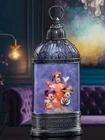 Product Details Set the mood with this wonderfully, whimsically wicked lantern. Lights set the perfect mood for any Halloween event or decor. Features: Illuminated Approximate dimensions: 3.3” (W) x 6.1” (L) x 13.5” (H) Approximate weight: 5.2 lbs. Timer Function: 6 hours on, 18 hours off 3 "C" batteries required (included) For decorative indoor use only Accessories not included This is not a toy