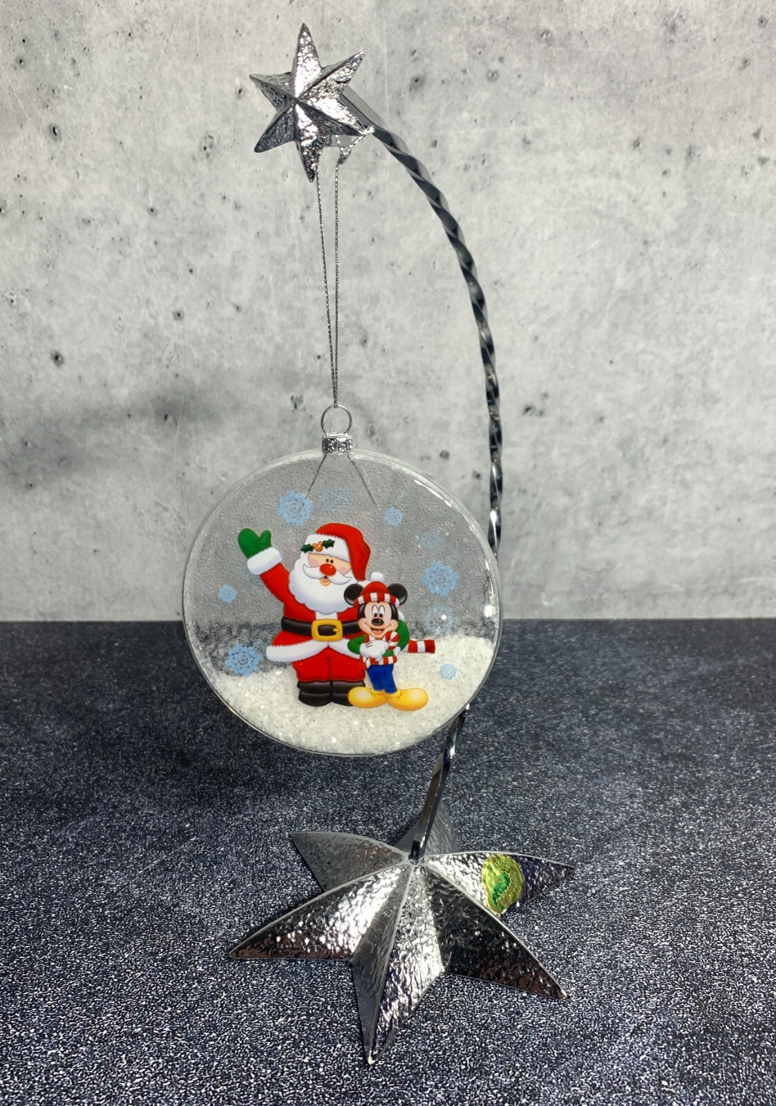 Disney Christmas Ornament - Mickey Mouse and Santa - Flat Snow Globe