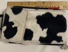 The Disney Store Mickey Mouse Crossbody Wallet Cow Print 8x4x2" Strap 20". Please All Photos, Light Scuffing on the Flaps All Snaps and Zippers Work