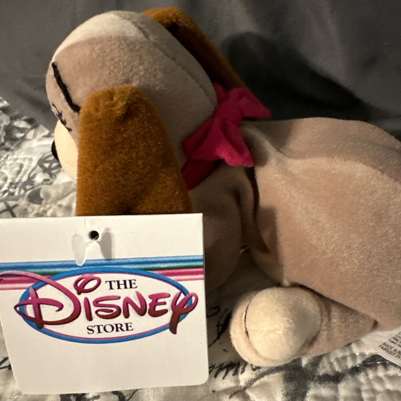 This 8-inch bean bag plush toy features the beloved characters Lady and the Tramp from Walt Disney World. Made in China with high-quality materials, this plush toy is a must-have for any Disney fan. The plush is soft and cuddly, making it perfect for children and adults alike. The design and attention to detail on this plush toy are impressive, capturing the essence of the characters perfectly. Whether you're a collector of Disney memorabilia or simply looking for a fun and unique addition to your home, this Walt Disney World LADY and The Tramp 8" Bean Bag Plush is sure to please. Tags remain on the bean bag.