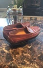 Elegant leather loafers with a sleek design. Comfortable slip-on style. Ideal for versatile wear. These are in excellent condition. •Soft leather uppers for ultimate comfort and styling •Moc toe; slip on •Quality leather sock linings •Sure-grip rubber outsole