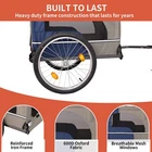-------------------------------------------------------------------------------------------------------------------------------------------- Dog Bike Trailer, Breathable Mesh Dog Cart, Safety Flag, Reflectors, Folding Pet Carrier Wagon with 16 Inch Wheels, Bicycle Carrier for Medium and Small Sized Dog ---------------------------------------------------- Description 【WATER RESISTANT MATERIAL】 Element and weather-resistant fabric with a 2-in-1 canopy and mesh shielding so your dog can enjoy the ride without pesky critters getting in the way. 【FOLDABLE FRAME】 Unique collapsible folding frame is perfect for family vacations and tidy compact storage.The unique folding frame makes the Pet Trailer easy to store and bring along on your next adventure! The low maintenance, 16 inch, 1-piece molded nylon wheels have air-filled tires that easily inflate with standard bike pump. Do not over-inflate. 【SAFETY FIRST】 Includes internal leash and no-slip floor to keep your pup safe and secure. Hook up the trailer, clip them in and enjoy your ride! 【FRONT DOOR AND REAR DOOR】 Rear doggy door provides easy entry and exit and securely zips for added safety. 【BIKE COMPATIBILITY】 Compatible with nearly all adult bicycles with included coupler. Fits 20”-29” wheels. Internal leash is adjustable to prevent pets from leaping out of the trailer, holds one Pet up to 88lbs. Plenty of air ventilation. ---------------------------------------------------- Highlights * Stable 16" quick release wheels for sturdy use * BIG wheels for good terrain * Reflector lights an safety flag included * 2-in-1 canopy * weather resistant fabric * Folding design for excellent space-saving * Easy to clean * Fast assembly * Fits for almost all adult bicycles with coupler for 20"-29"wheels ---------------------------------------------------- Product Dimension * Total dimensions (LxWxH): Approx. 45.7" x 22.8"x 27.6"(error 0.5") * Color Options: Red/Blue/Green/Yellow/Multicolor * Weight Capacity:88 lbs Package including 1 x pet bicycle trailer (other decorative items not included) ---------------------------------------------------- ABOUT US: SUNCO welcomes your arrival, we focus on higher quality furniture products. We aim to provide you with a more convenient and relaxing life, hoping to help you and you loved one to enjoy more leisure time. SHIPPING: (1) When we receive the order, we will immediately check the order. If the information of the order is insufficient, we will email you immediately. Please check the email within the first day after purchasing the product to avoid the delay delivery. (2) Under normal circumstances, you will receive the goods on 2-8 working days. If the address belongs to remote areas, the time will be longer. Please understand if encounter blizzard weather. (3) Currently, we do not ship to APO/FPO/PO Boxes. RETURN POLICY【Ask the seller a question】: (1) For damaged or defective items, just contact us using the " Ask the seller a question" link on eBay, please send pictures for us to check. We will help you within 24 hours and provide good solutions as soon as possible. (2) For the wrong purchase, no longer need, not in line with expectations or the items rejected during delivery: Please contact us to get an authorization and returning address before sending the item back.If an item is returned because of an undeliverable shipping address, buyer agrees to pay the cost for re-shipment. (3) Cancellation order: You can cancel the goods at any time before they are shipped. If the tracking number has been uploaded, please contact us and we will help you. CONTACT US【Ask the seller a question】: If you have any questions, please contact us at any time. Due to the time difference, we may not be able to reply to you immediately, but we will definitely reply to you within 24 hours. (It may just a little longer during weekend or holiday,but we will do best to reply within 2 days.Your understanding is highly appreciated.)