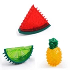 Feature: 1. Easy to Fill: There are water injection holes on the surface of dog cooling chew toy, which can be injected with water or pet drinks in summer. 2. Cooling and Hydrating: While the dog is playing, the pet teething toy has the effect of cooling and hydrating. 3. Fruit Shape: Fruit imitation shape, special textured surface. The unique shape is easy to see how this colorful toy would be attractive to a puppy. 4. Silicone Material: The dog bite toy is made of soft silicone material, which is interesting and elastic. Keep your pup playing longer period. 5. Pet Relax: Great for playing, fetching, swimming. Satisfy for home casual play, holiday beach play and pool party. Specification: Item Type: Dog Chewing Toy Material: Silicone Package List: 1 x Dog Chewing Toy