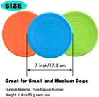 INTERACTIVE DOG TOYS:Dog flying disc designed for a high-flying game of fetch with your dog in the water, grass or snow. This flying disc dog toy is the perfect solution for fitness, exercise, dog training, and a great alternative to dog balls or tennis balls for dogs. Just chuck it and watch your pup go. DURABLE DESIGN AND SAFE ON TEETH: This flying disc for dogs features a durable, harmless pure natural rubber which is safe on your dog’s teeth and designed for lasting outdoor use. NOTE:PLEASE DO NOT LET YOUR DOG CHEW IT, NOT CHEWPROOF. AERODYNAMIC DESIGN FOR EASY FLIGHT:These soft dog flyer dics are designed for long distance flight.The aerodynamic grooved design makes the flying discs keep flying with just a flick of the wrist.Creates toys that enrich the human-animal bond & bright colors(Blue & Green)help dogs & puppies stay engaged. EASY TO CARRY: Our dog flying disc toy has a lightweight compact design for effortless carrying and easy storage, perfect for travel outdoor or walking.When your dog gets thirsty you can even turn it over and use it as a simple drinking bowl or food bowl. DOG TOY FOR VARY BREEDS:Includes 3 pcs dog flyer dog toys in each pack.Each size that is 7 inches in diameter.Ideal dog toys for large small dogs.Just add this dog disc to your dog tox box or give as unique dog gifts. Product Description Our XIGOU dog Flying discs is the perfect solution for fitness, exercise, and training. This flying disc features a durable, harmless pure natural rubber for long lasting outdoor use. With its lightweight, buoyant design, the dog discs floats in the water for interactive play at the beach, lake, or pool. Bright colors make the flying disc easy to locate in the bushes, leaves, and trees. Its 7.2-inch diameter makes it easy to bring your flying toys with you wherever you go. Simply, slide it inside your backpack, beach bag, or picnic basket for interactive, outdoor fun. Our dog flying discs provides a fun, engaging way to exercise with your dog. Get ready for a high-flying game of fetch with your best friend! Package: 2 pack dog flying discs Size: 7.2 inch Color: Blue and Green