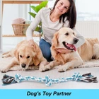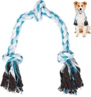 SAFETY MATERIAL -This puppy rope toy is made of natural cotton, safety and sturdy, allowing your pet enjoy chewing and playing IDEAL FOR SMALL MEDIUM AND LARGE DOGS - Our durable dog toys has 3 knots and 24inches long, designed for small,medium and large dogs, not for extra large dogs RELIEVE ANXIETY &PROTECT FURNITURE - Dogs love to chew on things, they will reduce anxiety by chewing. Now you can give them their own rope chew toy instead of your shoes, sofa and furnitures TEETH CLEANING - Natural material cotton fiber of this tug toy for dogs can gently and deeply clean between the dog's teeth, prevent the accumulation of plaque, achieve the effect of massaging the gums, and keep your dog's teeth healthy TUG OF WAR DOG TOYS - If your pet likes to tug of war, we recommend you try this dog rope toys. Vast majority of dogs enjoy tug of war, which keeps them healthy and happy Product Description Specifications: Material: Natural Cotton Color: Blue Length: 24inches Package content: 1PC 3 Knots Chew Rope Toy