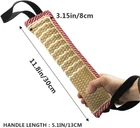 OUT OF THE ORDINARY: High quality dog bite tug toy with double stitching and a tough biting sleeve surface made of jute, withstand the daily tugging. 2 rope handles is comfortable and easy to grip, full control and stability. DOG TUG TOY: This is great interactive, reward, training and exercise toy, suitable for indoor or outdoor play—tug for war, police Favorites, ring sport, agility, creating prey drive or other more. SUITABLE SIZE: The toy is perfectly sized to make it easy to hold for an interactive play or fetch, while it won't cause any damage when thrown around by your dog. NOT A CHEW TOY: This dog tug toy is built safe and tough but no toy is indestructible. Tug Toys are meant for interactive tugging between you and your dog only, not chew toys. UNSUPERVISED CHEWING IS NOT RECOMMENDED: Tug Toys are meant for interactive tugging between you and your dog only, not chew toys. We strongly recommend that you do not allow your dog to keep the toy after interaction has finished and don’t let him bite the handles. Product Description 1 Strong Handle 2 Double Stitches Edge 3 Durable Linen 4 Clean Dog's Teeth Different colors and patterns to choose from! Add to Cart Add to Cart Add to Cart Add to Cart Add to Cart Add to Cart Price — $9.99 $ 9 . 99 $9.99 $ 9 . 99 $9.99 $ 9 . 99 $9.99 $ 9 . 99 $9.99 $ 9 . 99 $9.49 $ 9 . 49 Material Stainless Steel Linen Linen Linen Linen Linen Linen Colour Silver Pink & Yellow Green Black Blue Pink & Yellow Pink & Yellow Pattern No No No Footprint Footprint Footprint Flag Have sturdy handles? ✘ ✔ ✔ ✔ ✔ ✔ ✔ Suitable for dogs? ✔ ✔ ✔ ✔ ✔ ✔ ✔