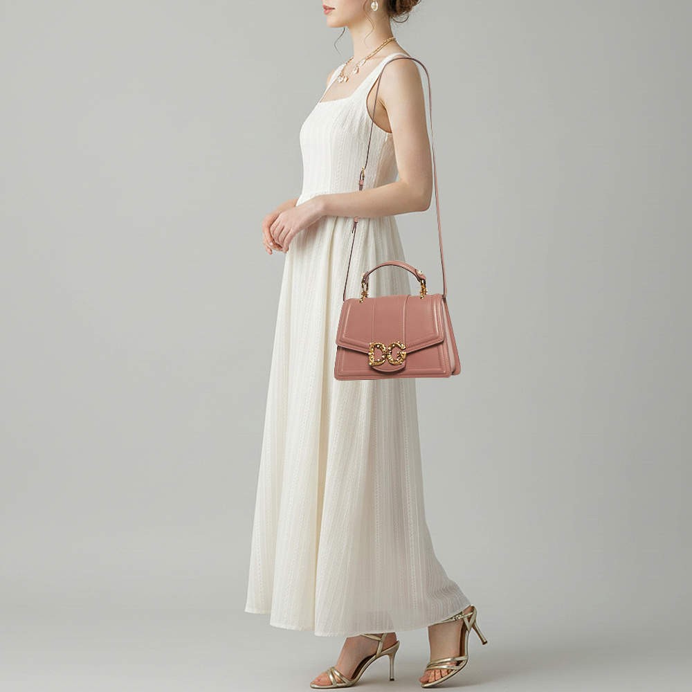 Our eBay Store About Us Contact Us Add to Favorite Sellers Dolce Gabbana DG Amore Pink Leather Top Handle Bag A preloved Dolce & Gabbana DG Amore top-handle bag in pink leather and decorative gold-tone metal. It carries well in hand as it does on the shoulder and opens to a compact, well-organised interior. A special bag that brings softness and color into a look. Product Details Brand Dolce & Gabbana Includes Authenticity Card, Info Booklet, The Luxury Closet Packaging, Det Certified by The Luxury Closet This item has gone through a detailed authentication process overseen by our experts. We offer a lifetime guarantee of authenticity on all our items. How We Check The in-house team of experts at The Luxury Closet is highly trained to verify the authenticity and the condition of the luxury products. They ensure that only 100% authentic items are put on sale.The evaluation process is unique with its own mix of assessment criteria and differs according to the category. Each item is evaluated based on the following combination of hallmarks, hardware, stitching, symmetry, material, craftsmanship, stamping, codes, hologram stickers, and packaging. Our authenticators also check if the items have been modified or amended (e.g., aftermarket diamonds, replaced batteries, repaired bags, etc.) Please note that this handbag may have a perfume scent, as it was stored and packaged in Dubai where such fragrances are commonly used. International Buyers Import duties, taxes and charges are not included in the item price. These charges are the buyers responsibility. Please check with your country’s customs office to determine what these additional cost will be prior to buying.