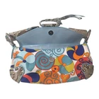 Eye-catching accessory: a Dolce & Gabbana handbag showcasing a vibrant floral print contrasted with snakeskin trim. This bag features a colorful array of floral patterns on the main body, accented by snakeskin detailing on the flap closure, edges, and handle. The hardware includes large silver-tone rings attaching the handle to the bag, complemented by studded accents along the snakeskin trim. The handle has adjustable length and buckle closure. Keywords: Dolce & Gabbana, handbag, shoulder bag, floral print, snakeskin, designer bag, luxury handbag, statement bag, D&G, vintage style, unique handbag, retro bag