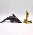 Brass dolphin weighs 14 oz, measures 2"x4"x5"H Wood dolphin weighs 1.8 lb, measures 9"Lx3.5"D