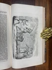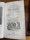 Description: First published in Spain in 1605 and 1615, Don Quixote de la Mancha by Miguel de Cervantes is considered one of the greatest works of world literature and the first modern novel. Its influence spread quickly across Europe, with English translations appearing as early as 1612. By the early nineteenth century, Don Quixote had become a staple of English publishing, with affordable illustrated editions issued to meet growing demand among middle-class readers. The 1833 edition printed in London by Jones & Co., under their “Temple of the Muses” imprint, reflects this surge of interest. Produced in two volumes and often accompanied by engraved plates, sometimes after designs by celebrated artists such as George Cruikshank, these editions brought Cervantes’ classic adventures of the errant knight and his squire Sancho Panza to a wide Victorian audience, combining literary significance with the period’s enthusiasm for finely illustrated books. Offered here is a handsome two-volume edition of The Life and Exploits of Don Quixote de la Mancha by Miguel de Cervantes, printed in London by Jones & Co. in 1833 . Publisher: Jones & Co., Temple of the Muses, London Date: 1833 Volumes: Complete in 2 volumes Translation: Charles Jarvis translation (commonly used by Jones & Co. during this period) Illustrations: Includes 24 engraved plates by Robert Sears and Cruikshank Binding: Half Calf with beautiful spine detailing's Provenance/Notes: Contains a pencil inscription noting “2 vols 1st ed illustrated with 24 Cruikshank plates” and what appears to be a signature in both volumes (Difficult to understand what it states) Condition: Pages with toning and some foxing spots All plates present Slight wearing along the spine and covers. Significance: Jones & Co.’s editions of Don Quixote are highly regarded among collectors of 19th-century illustrated books. The inclusion of Cruikshank plates makes this set especially desirable. Dimensions: Weight - 780g Height - 18.5cm Width - 11.5cm Thickness - 2.3cm