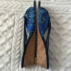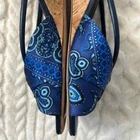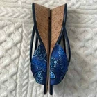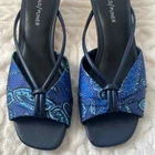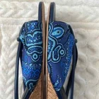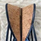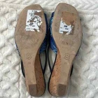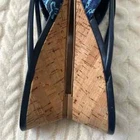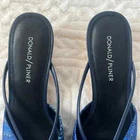 Donald J Pliner Andra Wedge sandal with Leather strap detail. 1.75" demi-wedge cork heel. Peep toe. Slide style. Padded footbed. Size: 8 Color: Blue In great condition! Stylish wedge sandals finished with a loop and gathered strap. * Leather and textile upper * Open toe * Slip-on style * Leather and textile lining * Leather sole * Imported •No Returns No Holds No trades