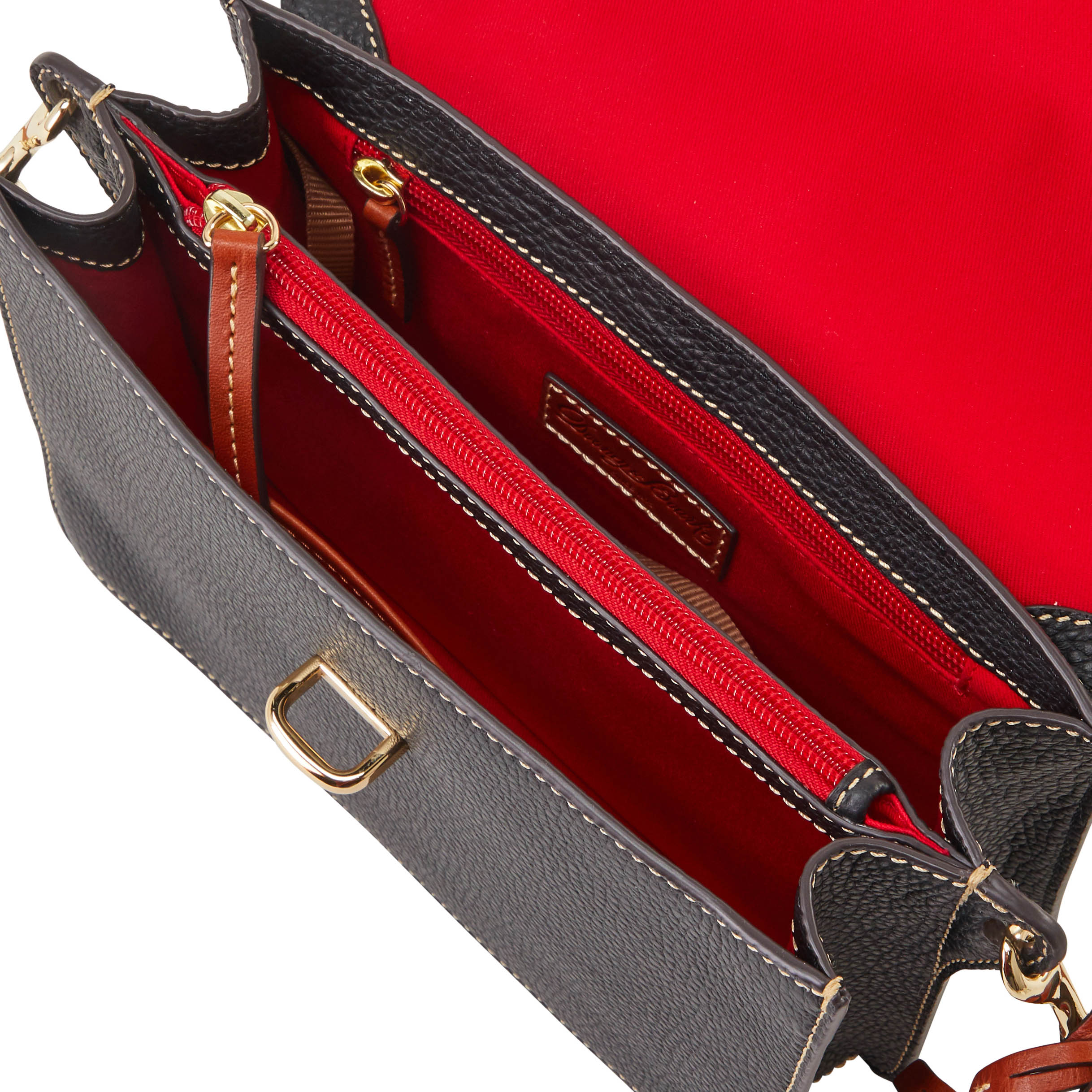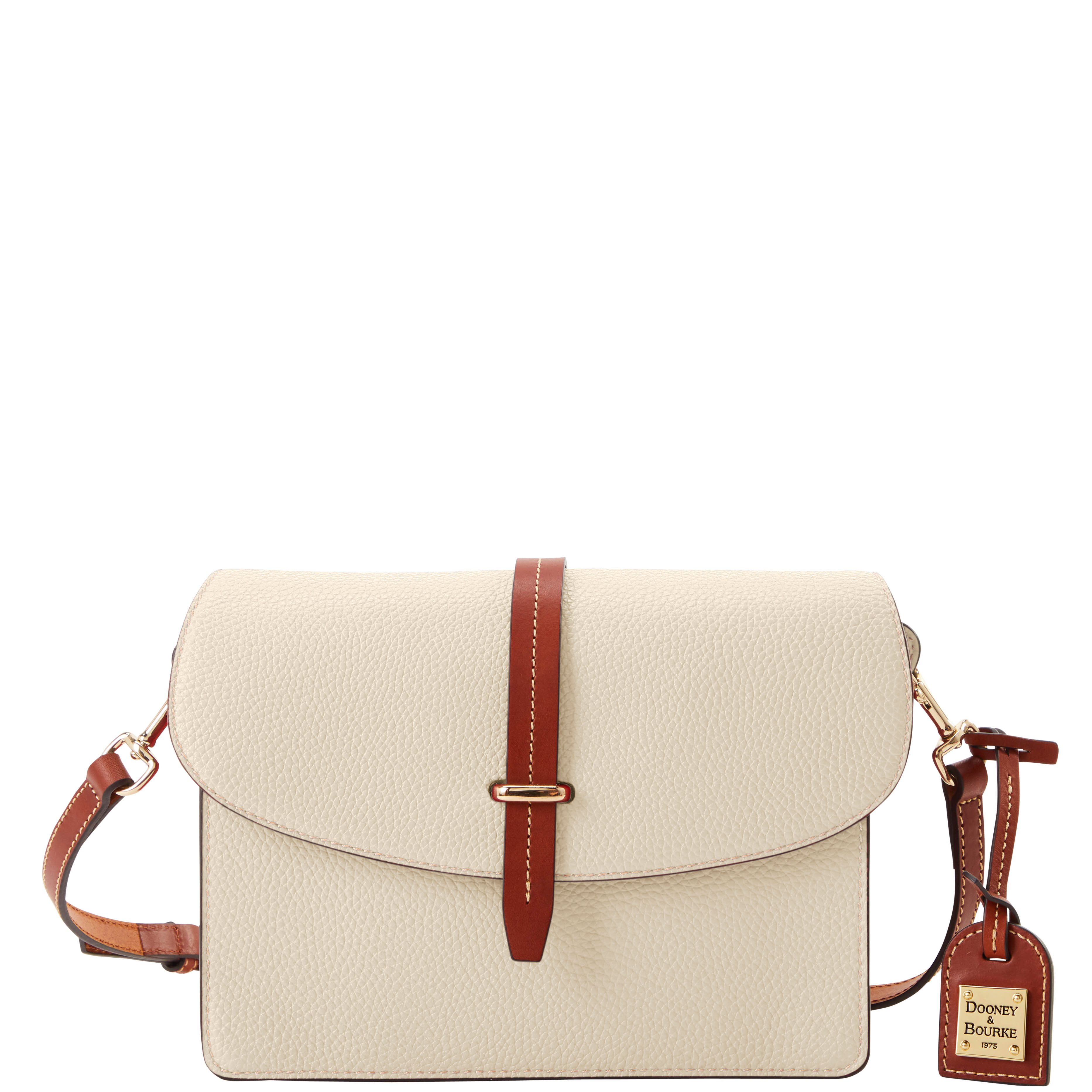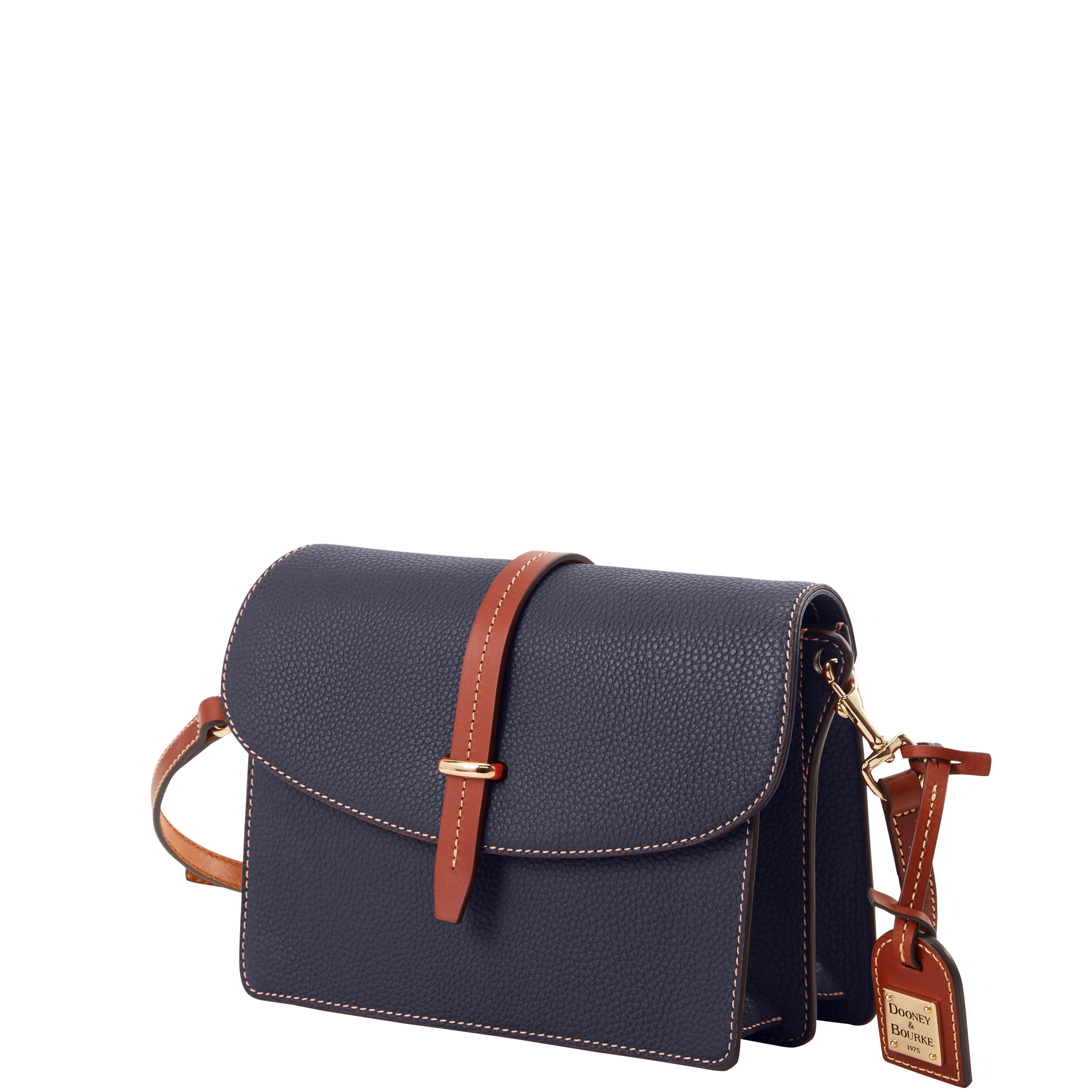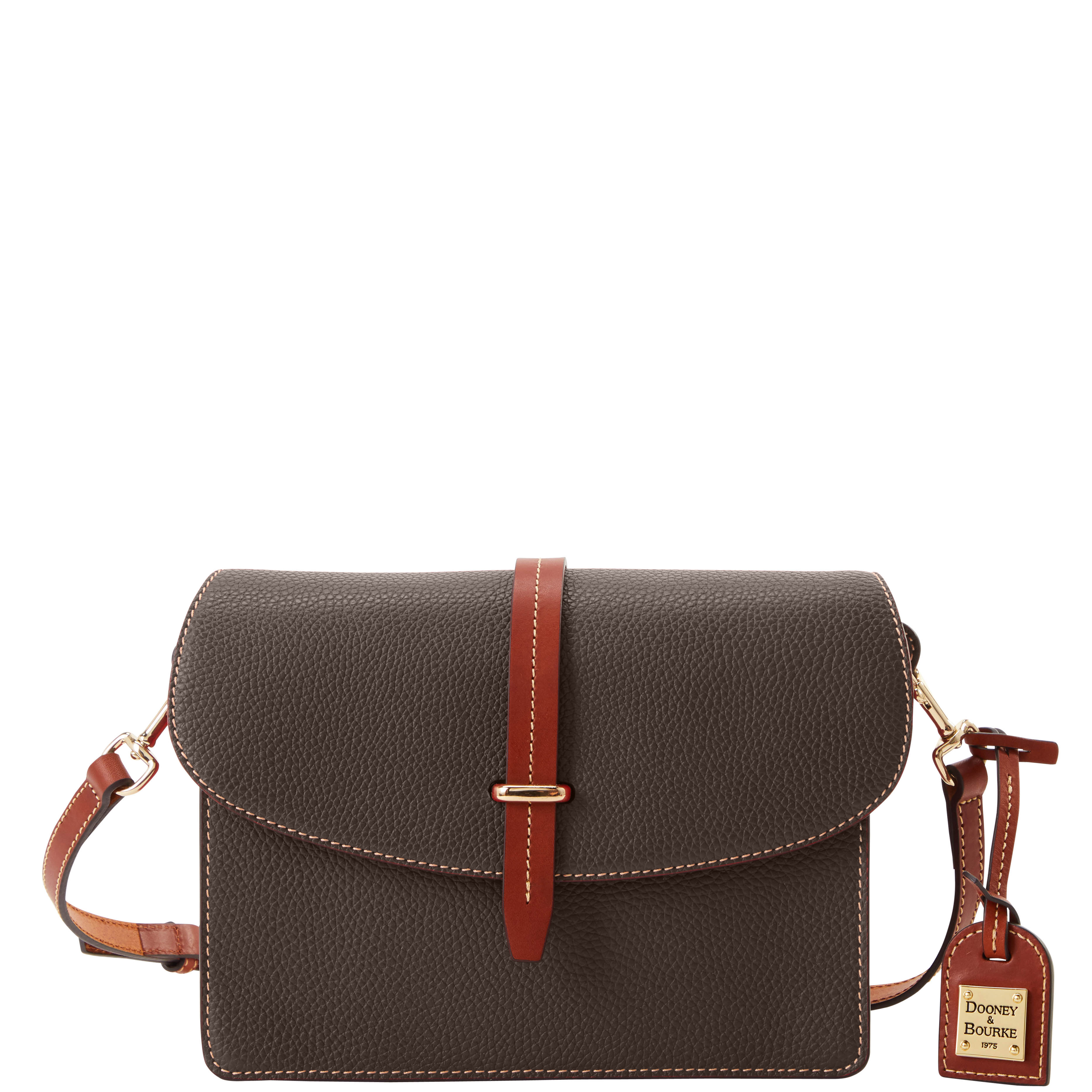 Dooney & Bourke Pebble Grain Flap Crossbody | Black Black. One inside zip pocket. One inside pocket. One zip center compartment. Inside key hook. Strap drop length 25.75". Lined. Flap with buckle closure. Dooney & Bourke Pebble Grain Flap Crossbody | Black Black