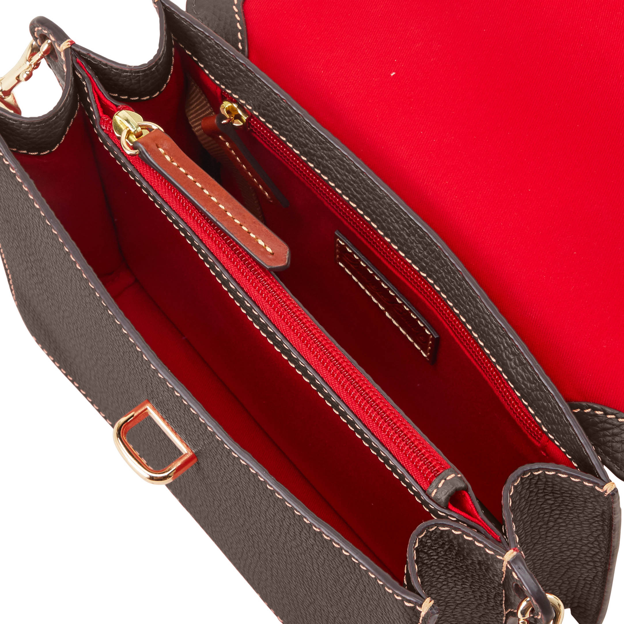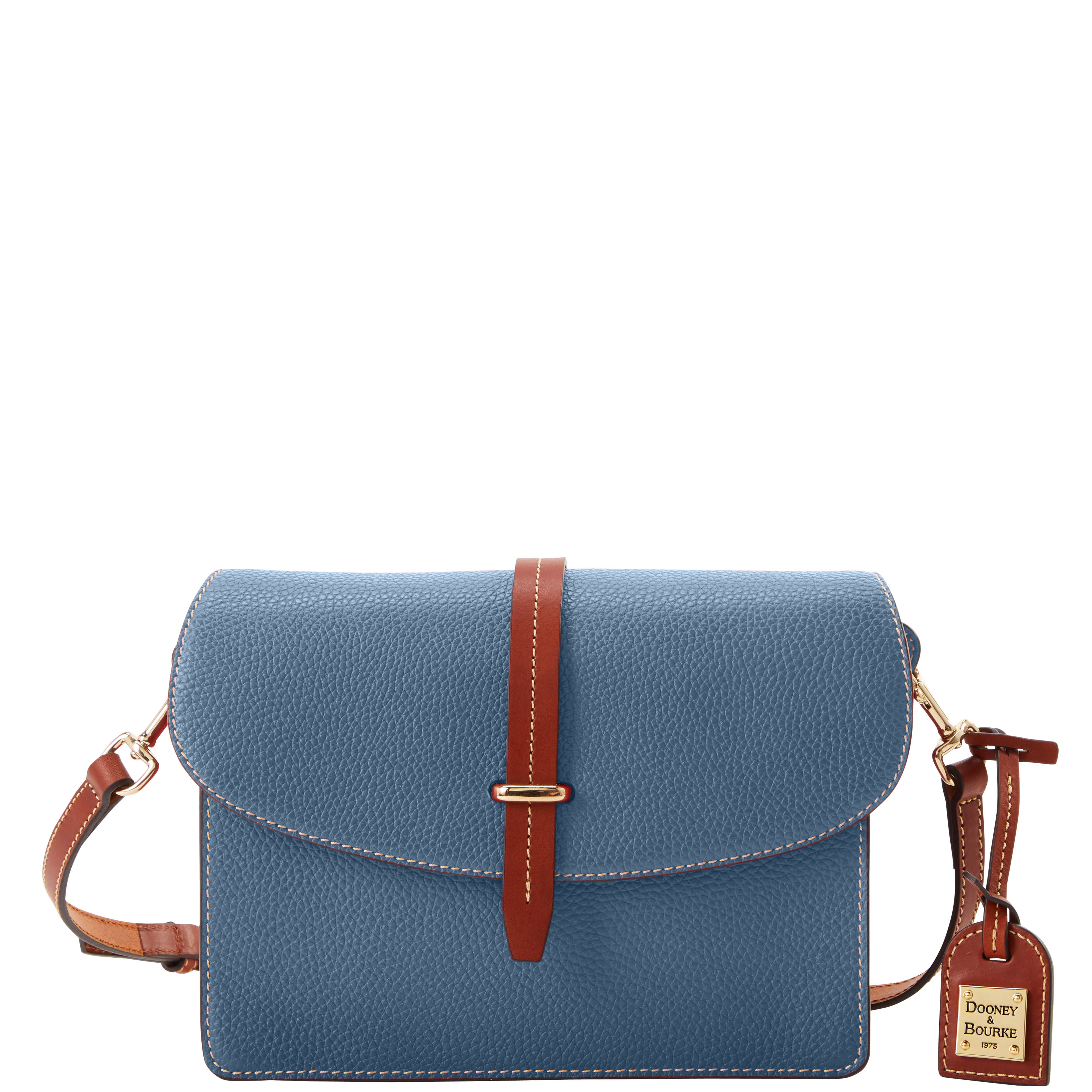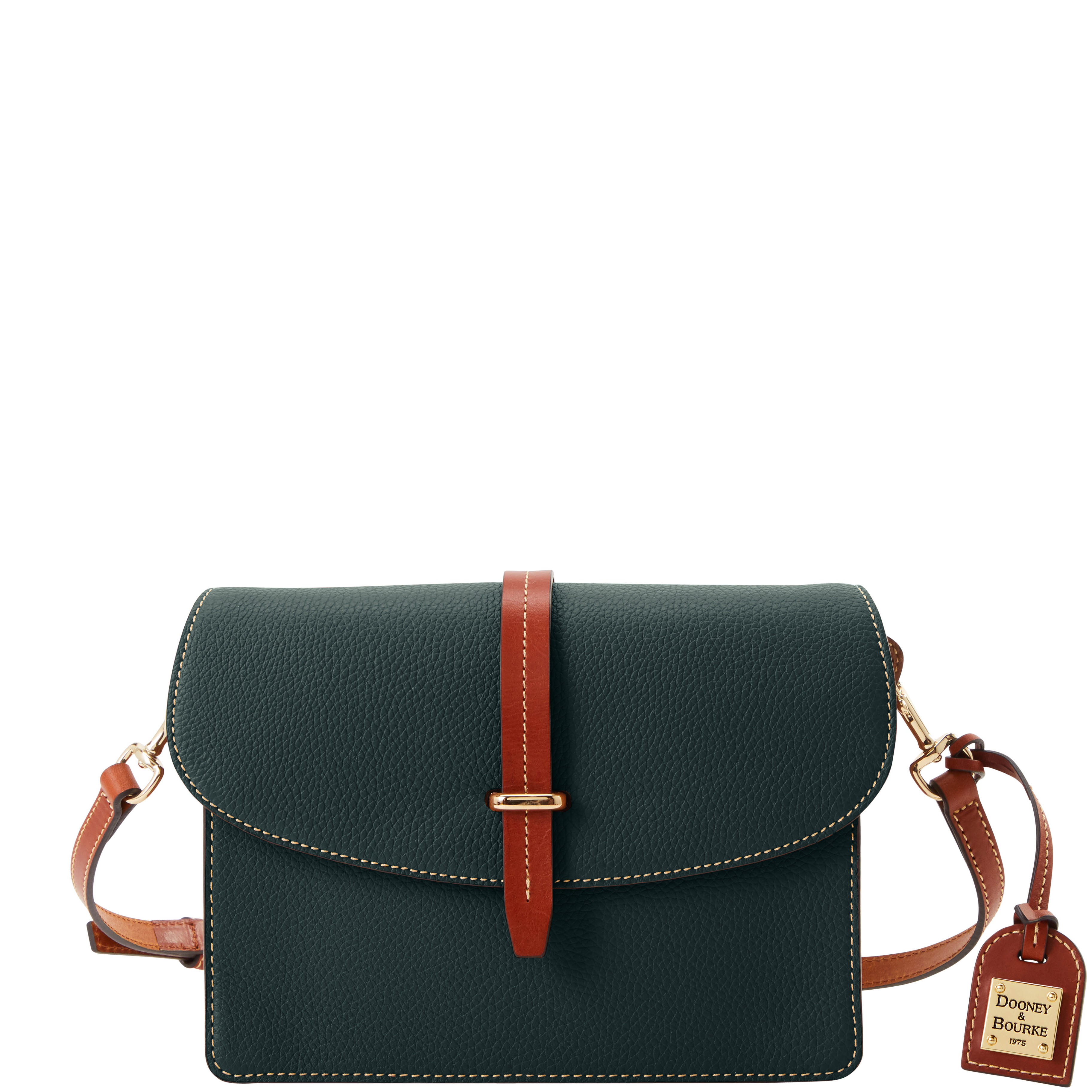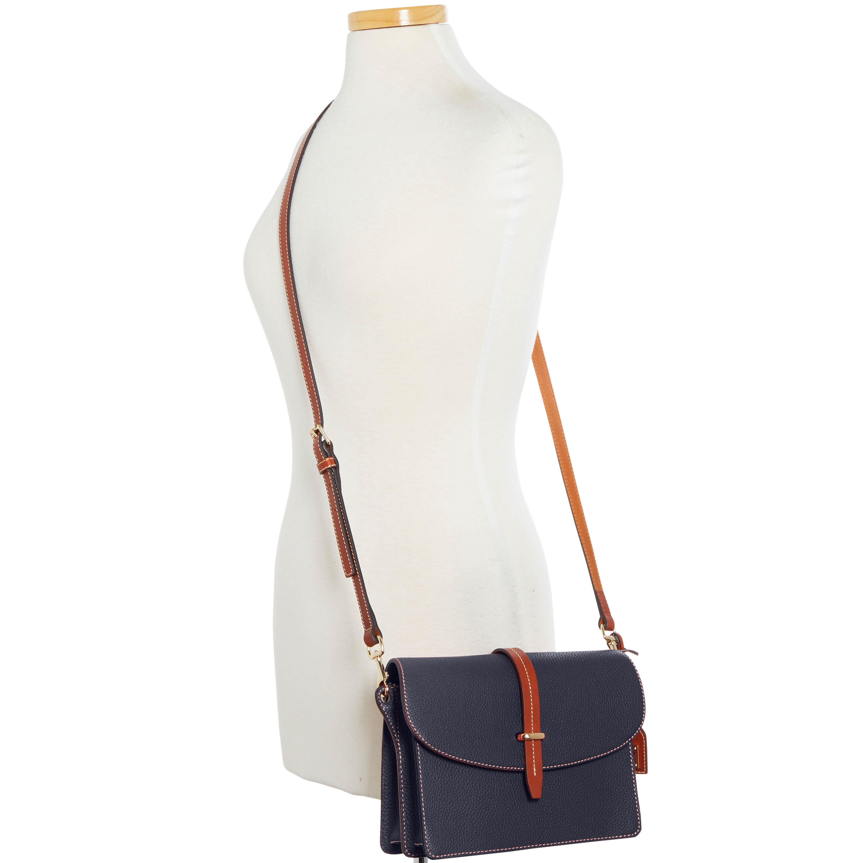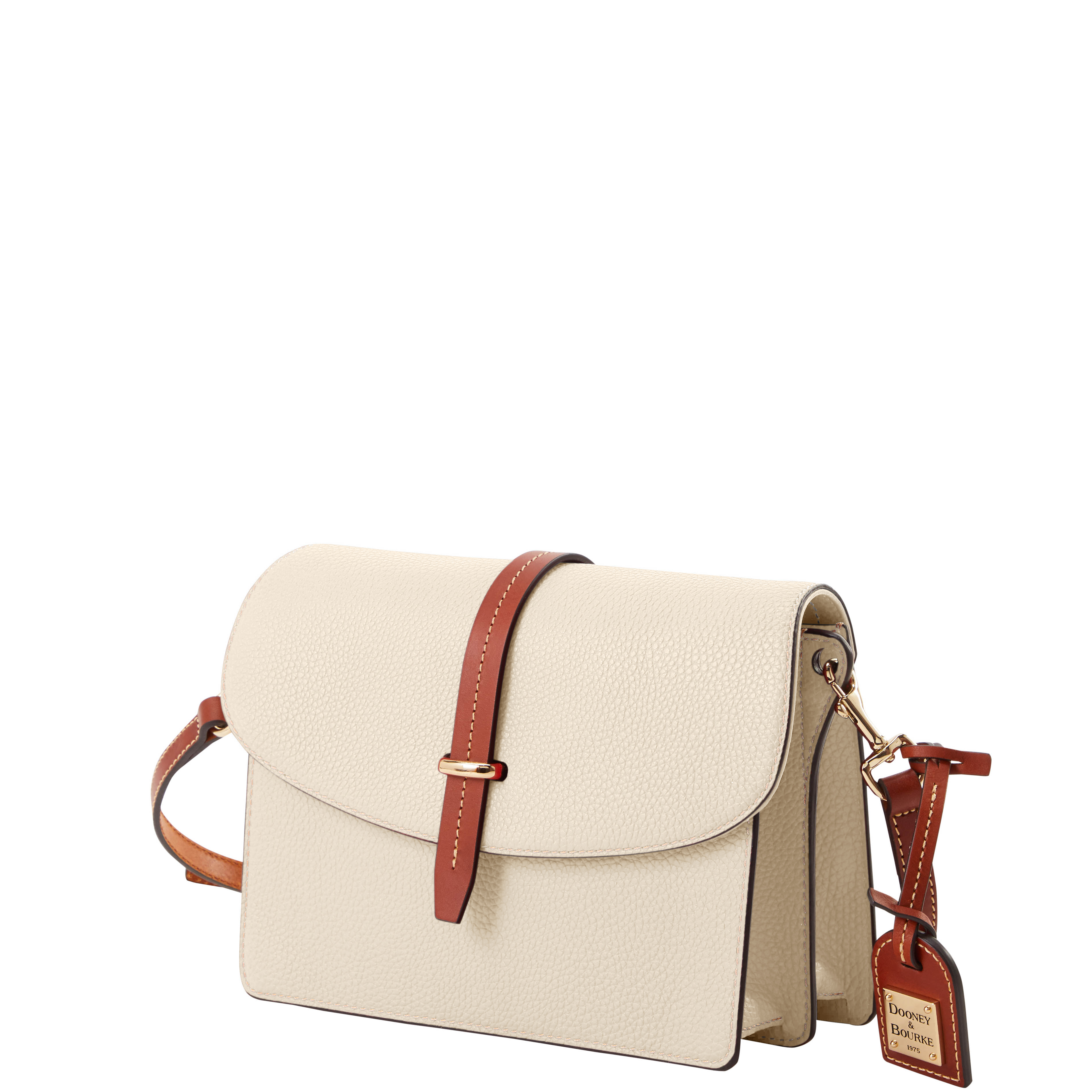 Dooney & Bourke Pebble Grain Flap Crossbody | Black Black. One inside zip pocket. One inside pocket. One zip center compartment. Inside key hook. Strap drop length 25.75". Lined. Flap with buckle closure. Dooney & Bourke Pebble Grain Flap Crossbody | Black Black