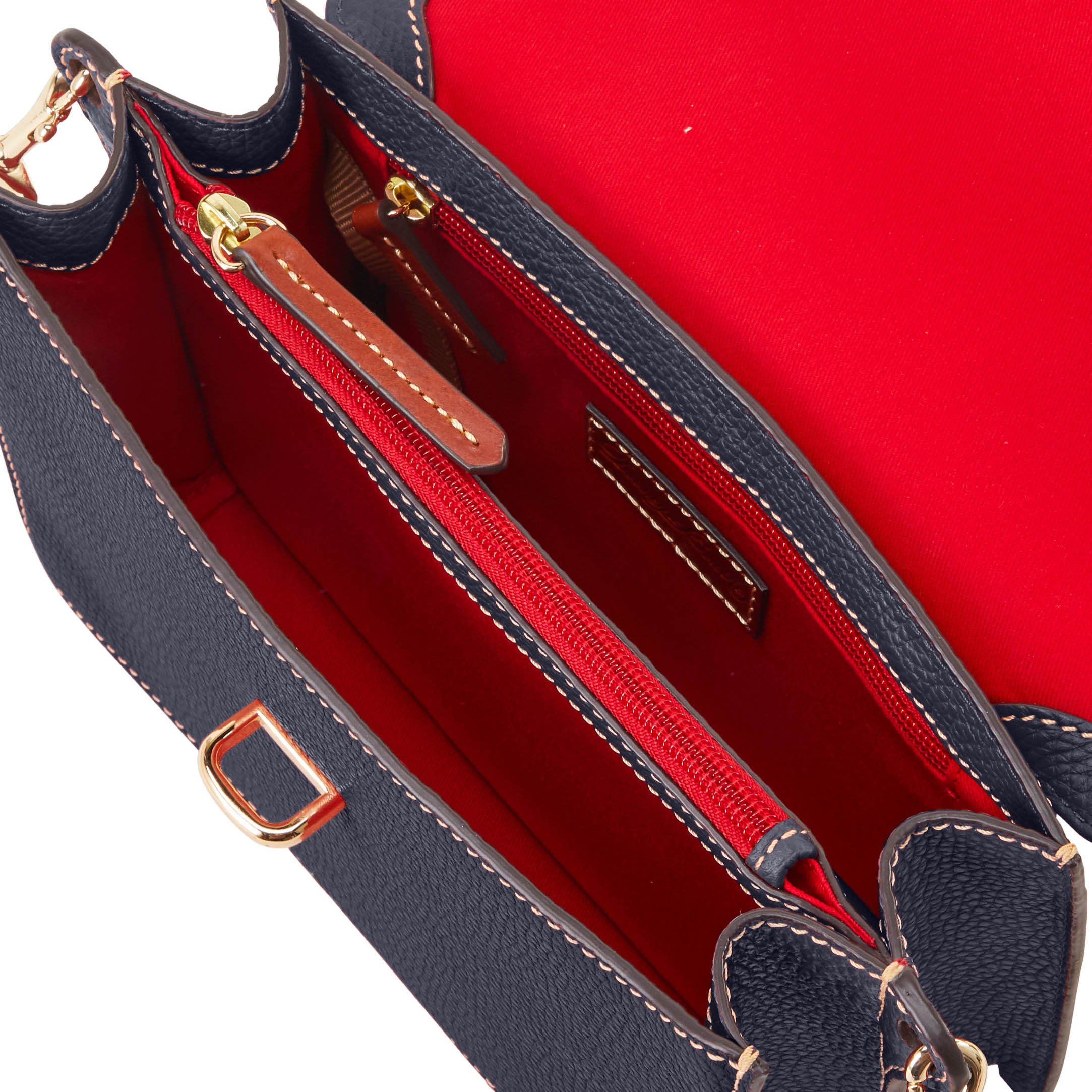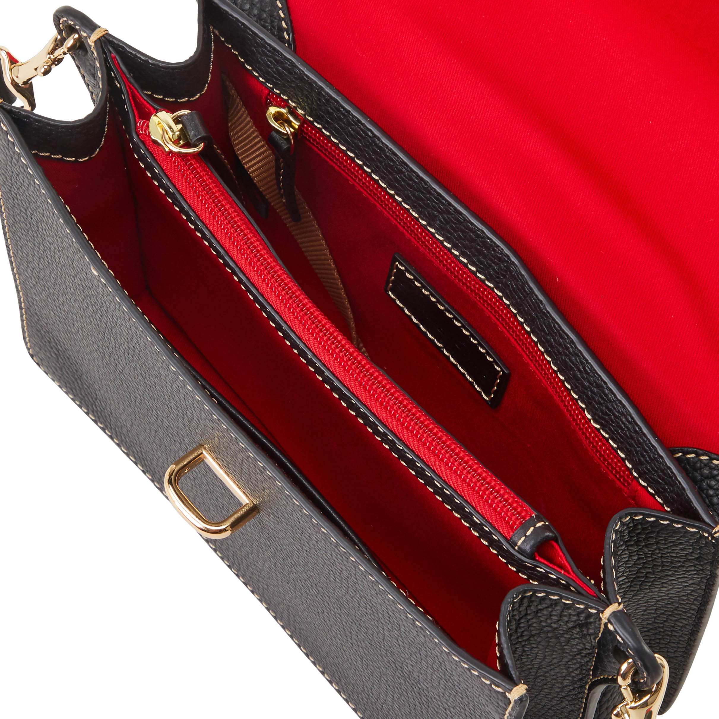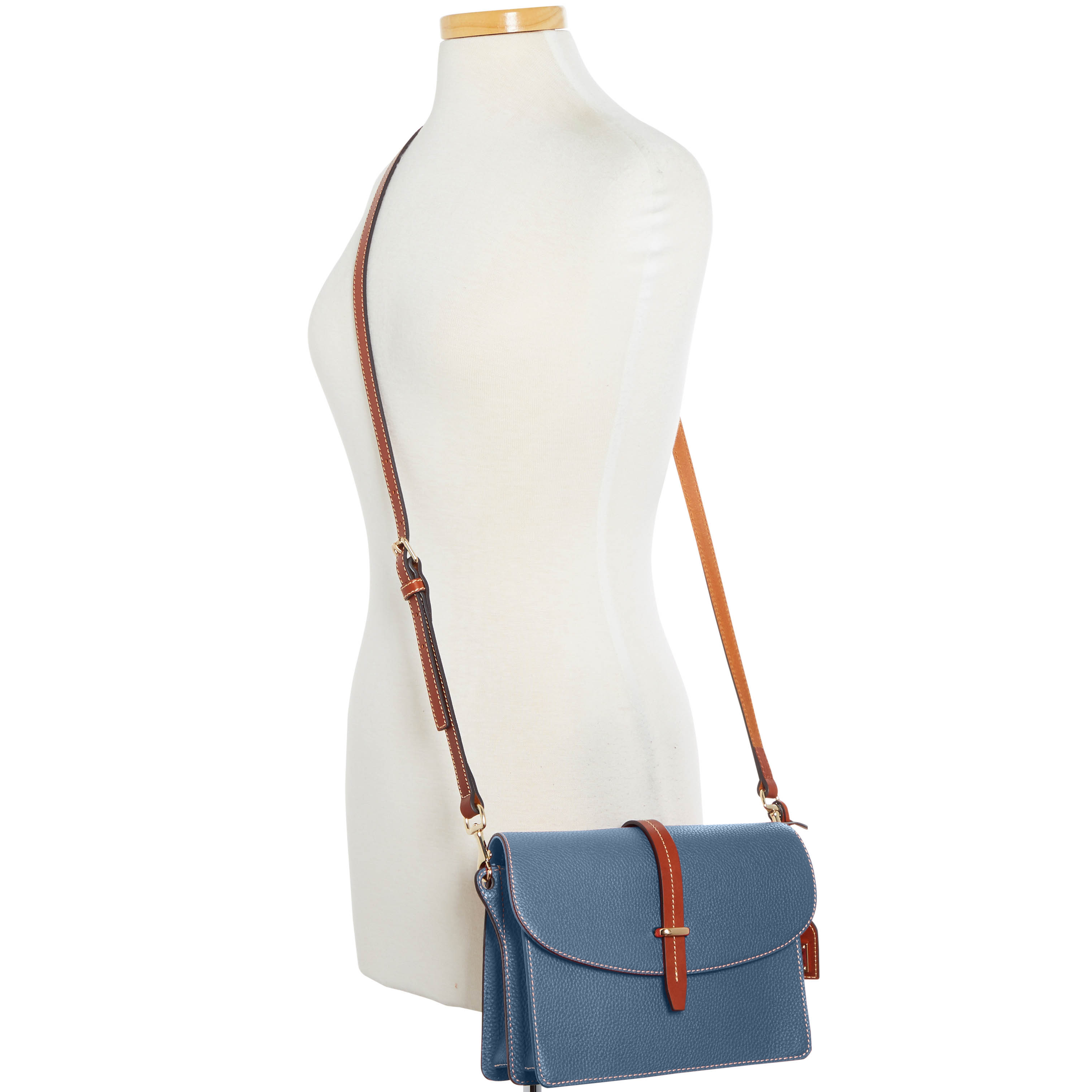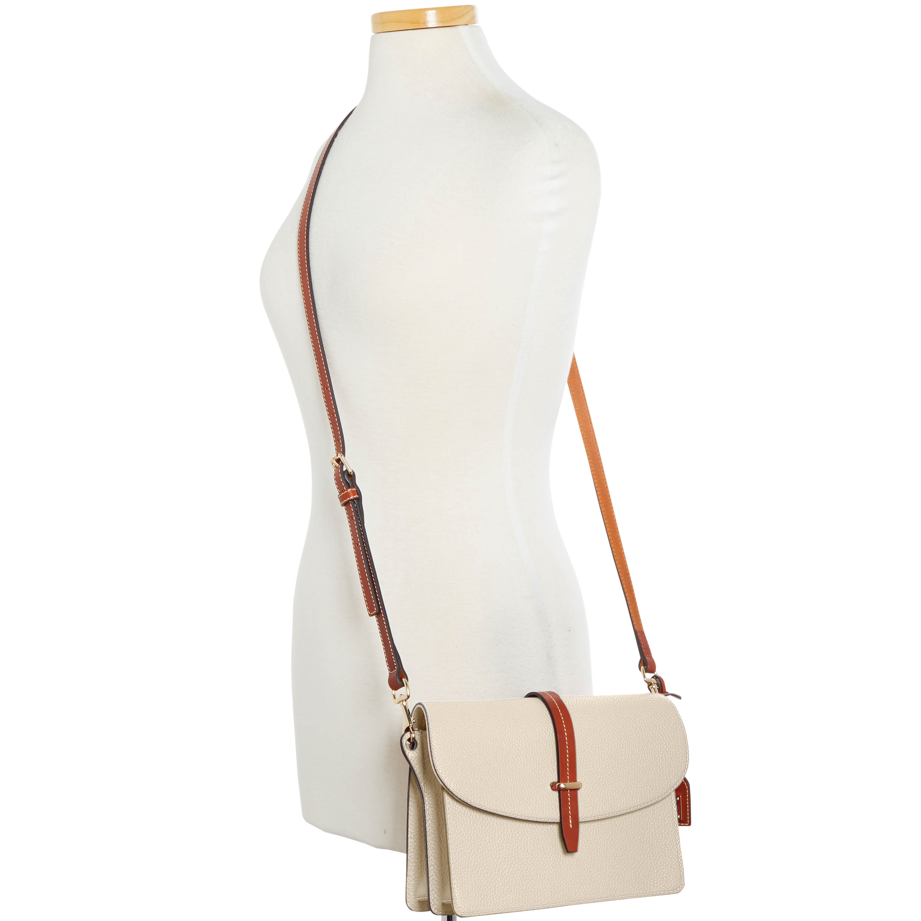 Dooney & Bourke Pebble Grain Flap Crossbody | Black Black. One inside zip pocket. One inside pocket. One zip center compartment. Inside key hook. Strap drop length 25.75". Lined. Flap with buckle closure. Dooney & Bourke Pebble Grain Flap Crossbody | Black Black