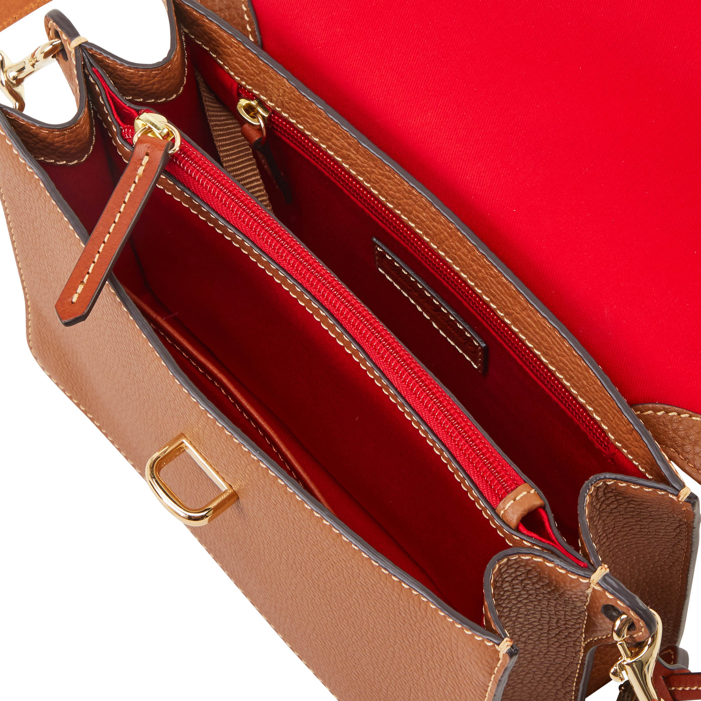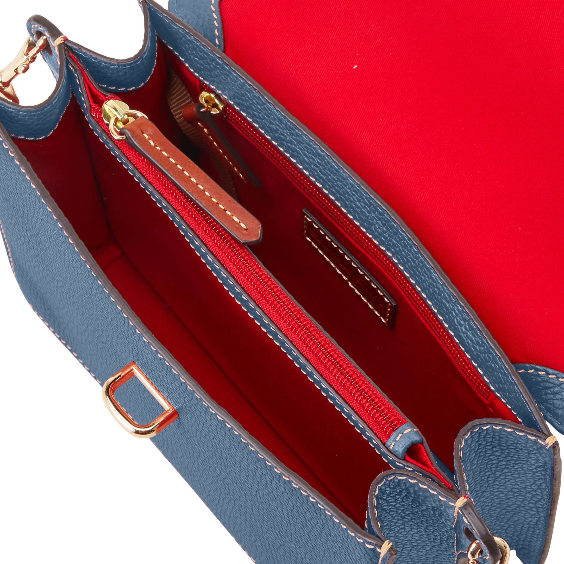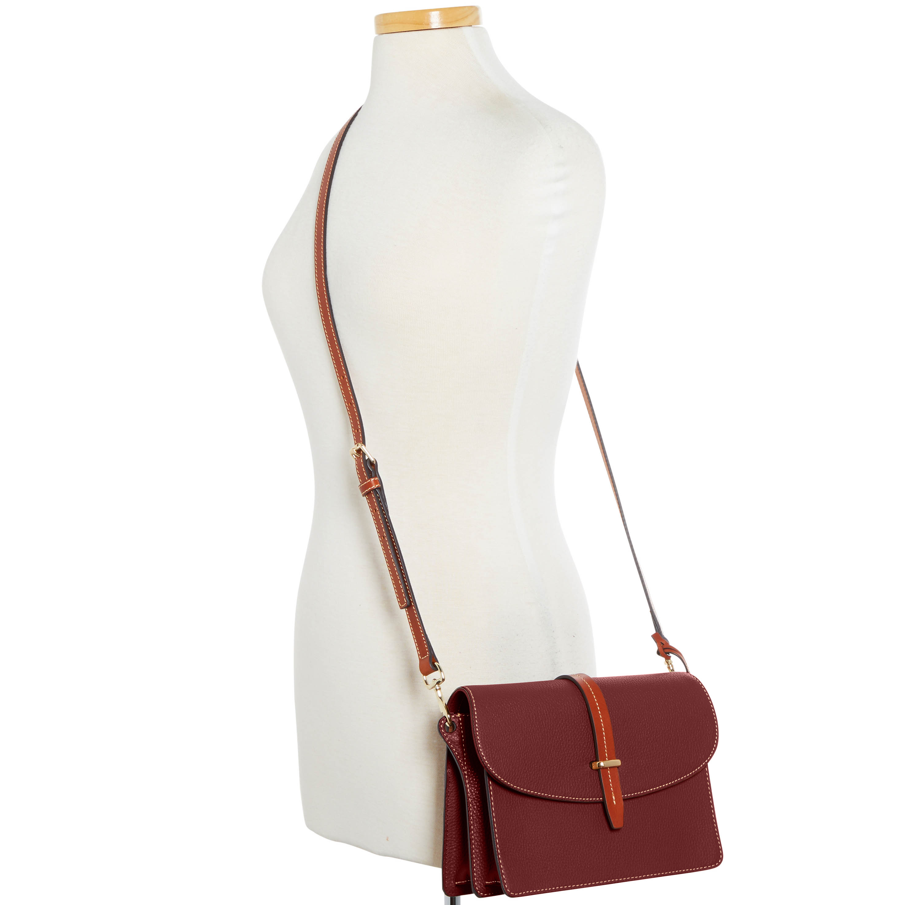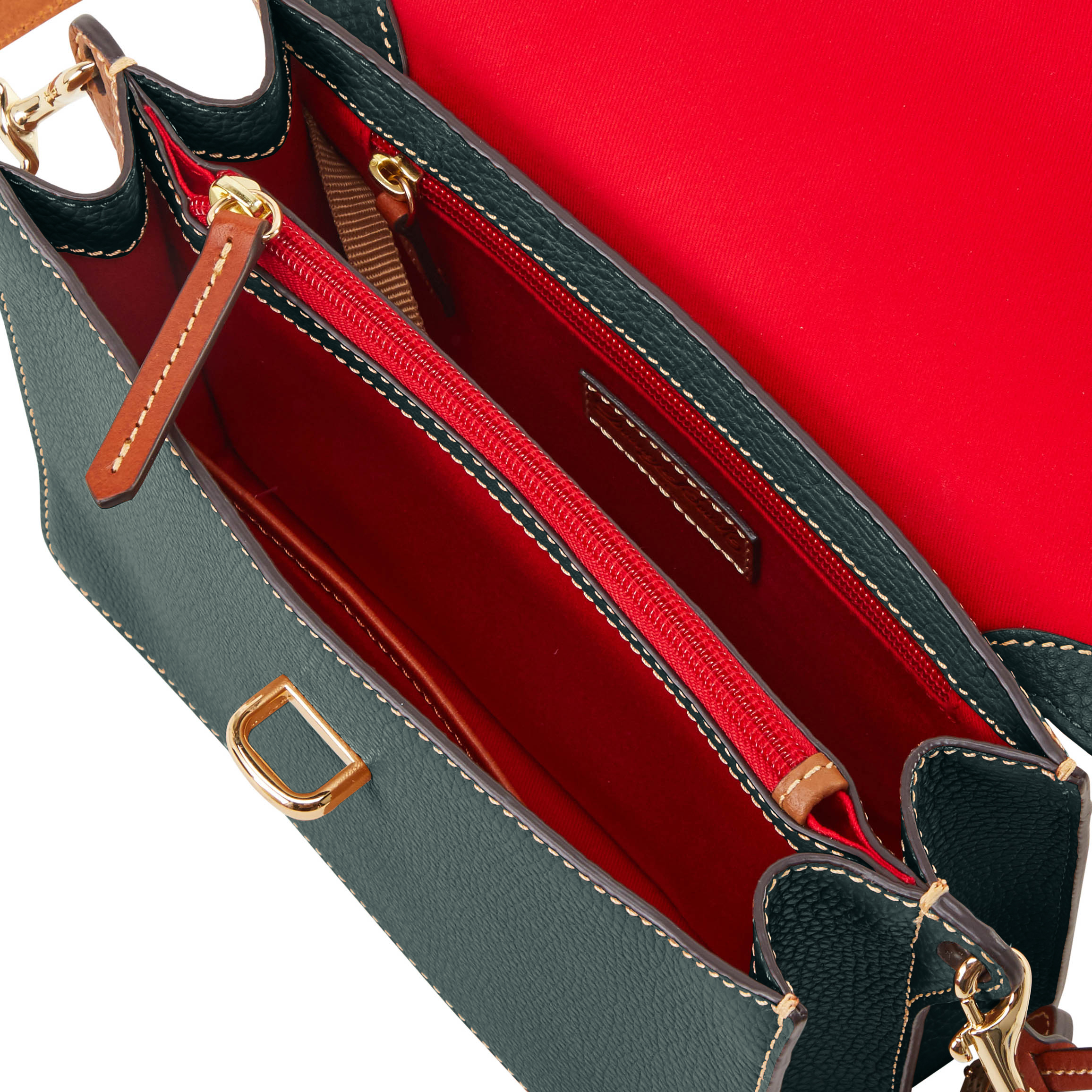 Dooney & Bourke Pebble Grain Flap Crossbody | Black Black. One inside zip pocket. One inside pocket. One zip center compartment. Inside key hook. Strap drop length 25.75". Lined. Flap with buckle closure. Dooney & Bourke Pebble Grain Flap Crossbody | Black Black