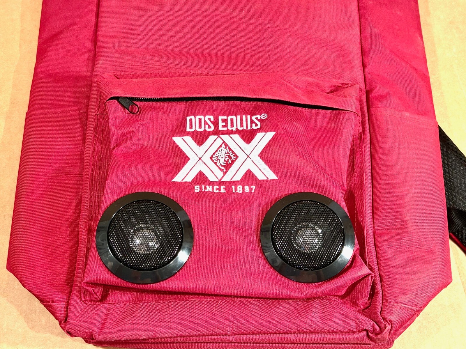 Dos Equis Waterproof Insulated Cooler Backpack with Built in Speakers Brand new Insulated Adjustable straps Built-in speakers Includes Charging Cord