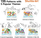 14 AMAZING COLORS, MORE CHOICE: This dot markers set contains 14 bright colors that can give kids more color selection. Kids are allowed to unleash their creativity and experiment with colors, and dotting process can promote toddlers’ self-expression and color recognition 5 ACTIVITY BOOKS WITH 135 SHEETS: This set comes with 5 activity books, including many interesting themes like vehicles, animals, fruits, numbers and alphabets. Kids can follow the patterns to dot, and each page introduces a fun thing for your kids to discover while dotting NON-TOXIC & ACID-FREE: These dot marker pens are completely safe for kids. We use non-toxic, acid-free ink that is gentle on the skin. The dot markers' materials conform to ASTM-D4236 standards FIT FOR SMALL FINGERS: Featuring 1.33 oz bottles, Shuttle Art dot markers are lightweight and easy for toddlers to grip. Designed to fit small hands, these markers are effortless for kids to hold, mix, and blend colors to create their masterpieces WASH UP EASILY: If your child accidentally gets ink on their hands or clothes, don't worry! Cleaning up is a breeze. Simply rinse with water and gently rub if needed. For stubborn stains, use hand soap or detergent for a thorough clean SERVICE GUARANTEE: Your satisfaction is our top priority, please rest assured to purchase our products. If you are not satisfied with our products or have any questions, please feel free to contact us at any time Product Description 1 MARKERS 2 PEN 3 PENCILS 4 PAINT 5 SCHOOL & OFFICE EASY GRIP & VIBRANT COLORS Easy to Hold Perfect for little hands to comfortably grasp and create. 5 Educational Dot Activity Book From animals and letters to numbers, fruits, vehicles, and vegetables, these dot activity books are perfect for fostering early childhood cognitive development. CREATIVE DOTTING & GAMES Innovative Dotting Creating unique and mesmerizing patterns with every dot. Game Play Ideal for engaging bingo games and endless fun. Dot markers Comparison Add to Cart Add to Cart Add to Cart Add to Cart Add to Cart Add to Cart Customer Reviews 4.6 out of 5 stars 471 4.5 out of 5 stars 1,347 4.5 out of 5 stars 2,251 4.5 out of 5 stars 1,843 4.6 out of 5 stars 471 4.6 out of 5 stars 471 Price $25.99 $ 25 . 99 $13.99 $ 13 . 99 $15.99 $ 15 . 99 $21.99 $ 21 . 99 $28.99 $ 28 . 99 $36.99 $ 36 . 99 Accessories 5 Dot Books with 135 Patterns 20 Patterns Activity Book 20 Patterns Activity Book 20 Patterns Activity Book 5 Dot Books with 133 Patterns 6 Dot Books with 155 Patterns Washable ✔ ✔ ✔ ✔ ✔ ✔ Non-toxic & Acid-free ✔ ✔ ✔ ✔ ✔ ✔ Volume 1.33oz/40 ml 1.33oz/40 ml 1.33oz/40 ml 1.33oz/40 ml 0.42 oz/12 ml 0.42 oz/12 ml Colors 14 Colors 10 Colors 12 Colors 14 Colors 36 Colors 12 Colors x 4 Sets