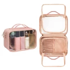 Multiple Compartments: This large capacity makeup bag has 2 parts pockets for storage, keeping accessories safe and easy to find. Large Capacity: The cosmetic bag is 9.8" x 5.8" x 7" with double zipper design to hold a lot of makeup products. Portable & See Through: This portable travel makeup bag is lightweight and see through design for easy storage and organization. Easy to Clean: The waterproof PU material makes this travel makeup bag easy to clean and water-resistant to protect cosmetics. Great Gift: This makeup bag is a great gift for women, men and families for travel or home use.
