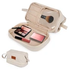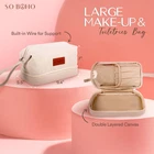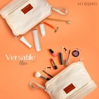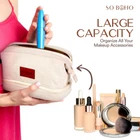 Double Layer Cosmetic Bag: Makeup Bag, Double Layer Travel Makeup Bag, Portable Toiletry Bag, Roomy Cosmetic Bag for Women and Girls, Natural Material Product Details Material Features: Water Resistant Material Type: Canvas Item Weight: 7.09 Ounces Item Dimensions L x W x H: 9.4"L x 7"W x 5.5"H Global Trade Identification Number: 01 Target Audience: Women Manufacturer: So Boho Brand Name: So Boho Age Range Description: Adult Recommended Uses For Product: Storage, Travel, Makeup and toiletry organization and storage Pattern: Solid Color: Natural Water Resistance Level: Water Resistant Closure Type: Zipper LARGE CAPACITY - Our beauty bag is 5.5 x 9.4 x 7 and features several storage pockets, providing sufficient space for all cosmetic items. The opening is embedded with steel wire that enhances visibility, making it easy to find your items inside. It also a cute logo on the front that makes the bag even more stylish. DOUBLE-LAYER STORAGE - The large makeup bag features a dual-layer design with separate compartments for efficient organization. The upper layer accommodates skincare products and assorted cosmetics, while the lower layer holds makeup brushes, eyeliners, lip glazes, and other similar items. ULTRA-DURABLE MATERIAL - Made from high-quality canvas, it is soft, light and ultra-durable. These womens makeup bags are designed for rough traveling conditions and will reliably hold your items no matter where you go. MULTI-PURPOSE - The make up traveling organizer bag can also be used as a wash bag, toiletry bag, and cosmetic case, providing convenience in everyday life. It will make your life easy whether you are going on a vacation trip or need something for your daily needs. STYLISH & PRACTICAL GIFT - This large cosmetic bag is the perfect combination of style and convenience, making it a great gift for mothers, wives, and daughters. Surprise your special girl with this amazing gift.