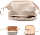 ♥Large capacity storage---Dimension: 5.5*7*9.4inch, Top carry handle for easy carry,when you go on a trip, you can pack all items at one time, so that every trip will have a delicate makeup. ♥HIGH QUALITY --- The fabric is made of premium leather, soft, comfortable, lightweight,tough and smooth.It is waterproof, so you don’t have to worry about water splashing on the cosmetic bag when washing your hands. ♥Unique design---The product is divided into upper and lower storage areas, the bottom is a makeup partition, eye shadow, makeup brushes are placed separately, clean and tidy. The upper layer has a large opening for easy access, and there are two small layers where you can put lipstick, earrings, etc., without mixing. ♥Multi-function---Not only can be used as a travel Cosmetic cases, the makeup bag also as a wash bag, a toiletry bag, suitable for all kinds of daily or travel use, and will bring great convenience to your life. ♥Woderful GIFT--- Give something you like to someone you like. The elegant and practical design often used as a fantastic present in Birthdays, Christmas, etc. Ideal Gift for Your Wife, Your Girlfriend, Your Daughter or that Special Person In Your Life. Product Description