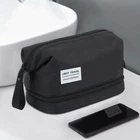 MORE COLORS ARE AVAILABLE : PINK & GREY - LISTED SEPARATELY - YOU CAN REQUEST BY SENDING US MESSAGE IF YOU WOULD LIKE ANOTHER COLOR Toiletry Bag Travel Bag Water-resistant Makeup Cosmetic Bag Travel Organizer for Accessories, Shampoo - Toiletries Large Travel Toiletry Cosmetic Bag : This double-layered portable makeup bag is designed for convenient storage of toiletries and cosmetics during travel. Double Layer Design : The bag features two compartments, allowing for efficient organization of toiletries, makeup, and other essentials. The top layer is transparent for easy visibility of contents, while the bottom layer provides additional storage space. Portable and Lightweight : Measuring 9.25 x 5.51 x 5.95 inches and weighing only 2 ounces, this bag is lightweight and compact, making it perfect for travel and on-the-go use. Durable Nylon Material : Crafted from high-quality nylon material, this bag is durable and easy to clean, ensuring long-lasting use. Spacious Storage : Despite its compact size, the bag offers ample storage space for a variety of items, including shampoo, conditioner, lotion, makeup brushes, cosmetics, and more. Secure Zipper Closure : The bag features a sturdy zipper closure to keep your items secure during travel and prevent spills or leaks. Versatile Use : Suitable for both men and women, this versatile bag can be used for travel, vacations, business trips, camping, gym sessions, and other activities. Sleek Black Color : The bag comes in a stylish black color, adding a touch of sophistication to your travel accessories. Multi-functional Pouch : Apart from storing toiletries and cosmetics, this bag can also be used to organize electronic accessories, stationery, medication, and other small items. Product Description Made of nylon material cosmetic bag, double layers, zipper closure, durable and convenient to use. Large capacity makeup pouch is spacious and fits travel accessories, makeup, lotions, brushes, and other beauty that you need. Roomy enough to store your daily essentials and make your stuff organized. This women's makeup organizer is for any occasion, such as business, school, dating, traveling, shopping, or daily use. Perfect choice for your husband, wife, mother, girlfriend, friend or colleague.