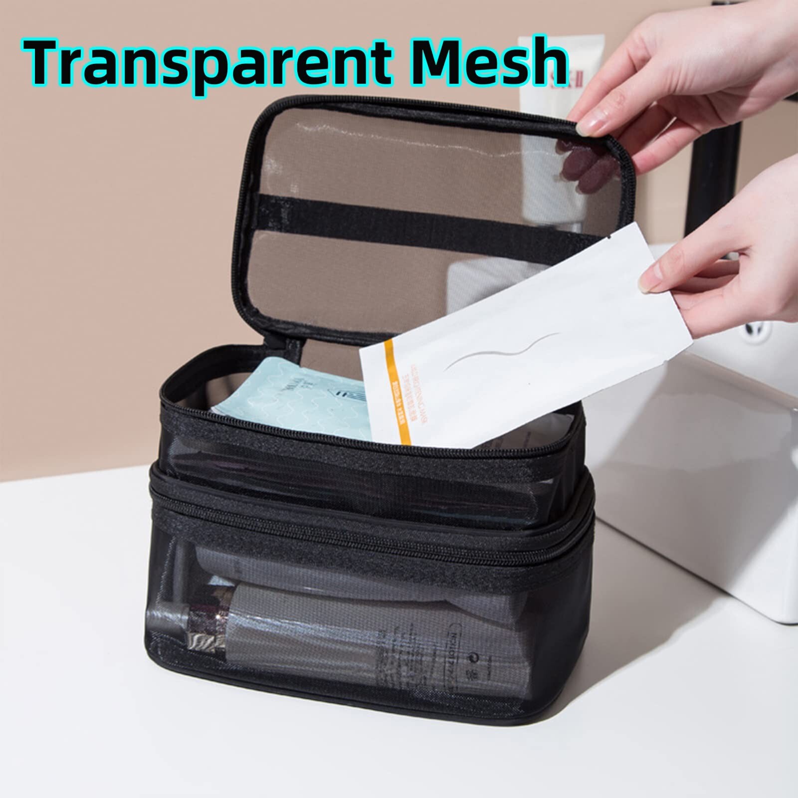 Double Layer Toiletry Bag for Men and Women,Bathroom Shower Bag, Lightweight Dopp kit Shaving Bag,Travel Organizer for Accessories, Shampoo, Full Sized Container, Toiletries (Black) Product Details Color: Black Brand: Jaugufiy MPN: F-2C-COSBAG UPC: Does not apply EAN: Does not apply Material Type: Nylon Item Weight: 0.12 Kilograms Item Dimensions L x W x H: 8.66"L x 5.51"W x 5.93"H Manufacturer: Jaugufiy Brand Name: Jaugufiy Age Range Description: Adult Pattern: Solid Color: Black Closure Type: Zipper PortableJaugufiy travel makeup bag is 8.66*5.51*5.9 inch and this makeup organizer is a practical compact design, weighing only 120g. So that's a major plus for travelling. EASY TO CARRYThe toiletry bag design doesn't take up too much space and easily fits in your backpack or travel suitcase. Perfect for Air Travel, Cruise, Road Trips. Stay organized, never lose anything again, and have the tools to tackle any toiletry project. Two Layers Unique DesignJaugufiy toiletry bag consists of two larger layers. So you can store cosmetic essentials or feminine products, medicines that must be kept dry without rummaging through the bag. Transparent MeshThe transparent mesh layer enables you to find things needed easily, so you can put daily essentials that frequently use, like lipstick and gloss. Multiple UseThis bag can not only be used as a toiletry bag, but also can be used as men or women's shower bag, bath organizer, bathroom bag, dopp kit, shaving bag, convenience kit, travel kit bag, hygiene kit,etc. Double Layer Toiletry Bag for Men and Women,Bathroom Shower Bag, Lightweight Dopp kit Shaving Bag,Travel Organizer for Accessories, Shampoo, Full Sized Container, Toiletries