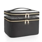 Makeup Bag, Double layer Cosmetic Cases Travel Makeup Organizer Toiletry Bags Large Make Up Bag For Women Girls with Adjustable Dividers and Brush Organize area BLACK CLEAR 【PREMIUM QUILITY】The cosmetic bag fits various sizes cosmetics,made of waterproof PU leather and transparent PVC, any stain on the surface can be easily wiped out. Each layer has 2 golden zippers makes this makeup case gorgeous and easy to use 【LARGE CAPACITY WITH DOUBLE LAYER 】- Size 10" x " x ". portable and light,Easily to carry. This make up bag definitely is a wonderful gift for valentine's day, mother's day, birthdays or just share them with your families and friends 【PROVIDES ENDLESS STORAGE AND ORGANIZATION OPTIONS】 -With thoughtful design on the top layer, There are two elastic slots on the top of the first layer of the cosmetic bag, which can be used to store Lip gloss, eyebrow pencil, liquid foundation, back is a makeup brush storage area,Fits full-size makeup brushes and protects the makeup brushes from dust 【ADEQUATE STORAGE SPACE】- A large makeup bag can store all women's cosmetics and toiletries. Our cosmetic organizer bag adds detachable Velcro divider, multiple segregated areas help separate the area for storing cosmetics and keep all items beautiful and organized. There are also 2 small pockets and some elastic slots in the main compartment, where you can put lipstick, nail polish, mirror and other small makeup tools 【PERFECT SOLUTION FOR ANY DESTINATION】 - The makeup bag lends a stylish, on-trend look. Chic and functional, this makeup organizer bag is great for taking your favorite cosmetics on the go or keeping them organized in one spot at home