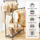$ 8.98Heavy-Duty Stainless Steel Garment Rack with Lockable Wheels and Mesh Shelf