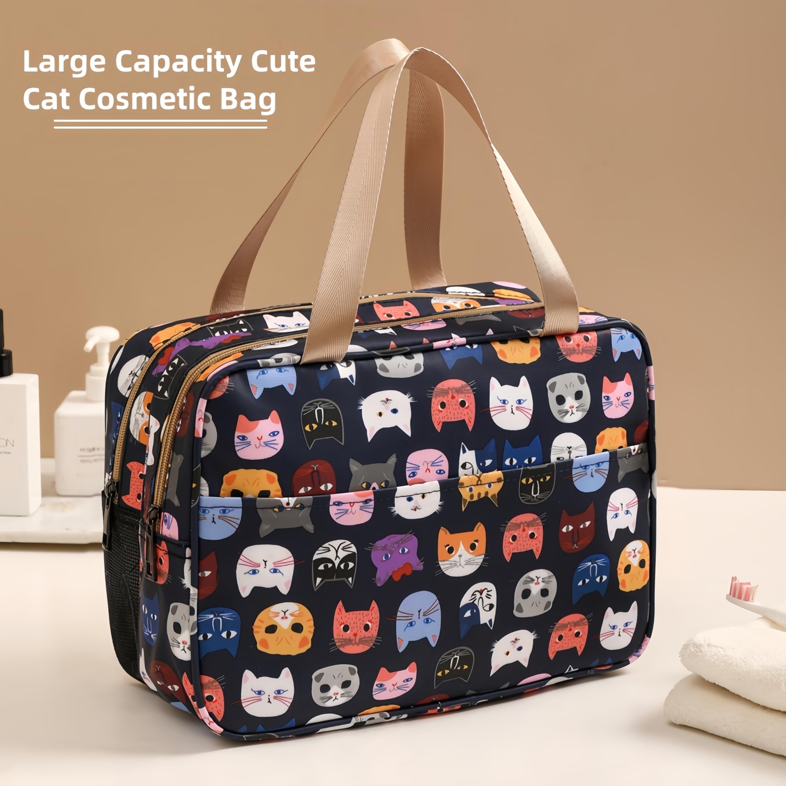 Cosmetic Bags for Women, Double-Layer Waterproof Cosmetic Bag With Handle, Large Capacity Wet and Dry Separation Travel Bag Women's Toiletry Bag (Cute Cat - XL) Product Details Color: Cute Cat - XL Brand: IN Chenthy MPN: BU013001 UPC: Does not apply EAN: Does not apply Product Dimensions: 12.5 x 5.5 x 8.5 inches Item Weight: 10.6 ounces Department: Womens Country of Origin: China Item model number: BU013001 High-quality Materials-The cosmetic bag is made of coated oxford cloth and textured microfiber PU leather, and the lining is made of polyester cotton and tin cloth. It is wear-resistant and pressure-resistant, waterproof and moisture-proof, casual and durable, and easy to clean. Makeup bag size-The size of the makeup bag is 11.8*5.5*7.9 inches (30*14*20CM) (length*width*height), and the weight is 0.25KG. This large-capacity makeup bag can store all your necessities, etc., which can save your luggage space and is convenient to carry. Double Compartment Design- One sealed compartment and one mesh compartment. The mesh compartment is suitable for storing towels or wet clothes, keeping ventilation and preventing odor. Multi-function BagCan be used as a toiletry bag, travel storage bag, cosmetic storage bag, makeup clutch, cosmetic bag handbag, portable travel set storage bag, household storage bag, etc. Perfect Gift-Strong, durable, soft, portable, casual, wet and dry separation, it is a great choice for business travel, tourism, gym, camping, home use, etc. It is a very cute and practical gift for women. This cosmetic bag is strong, durable, soft, portable, casual, and a great choice for business travel, tourism, gym, camping, home use, etc.